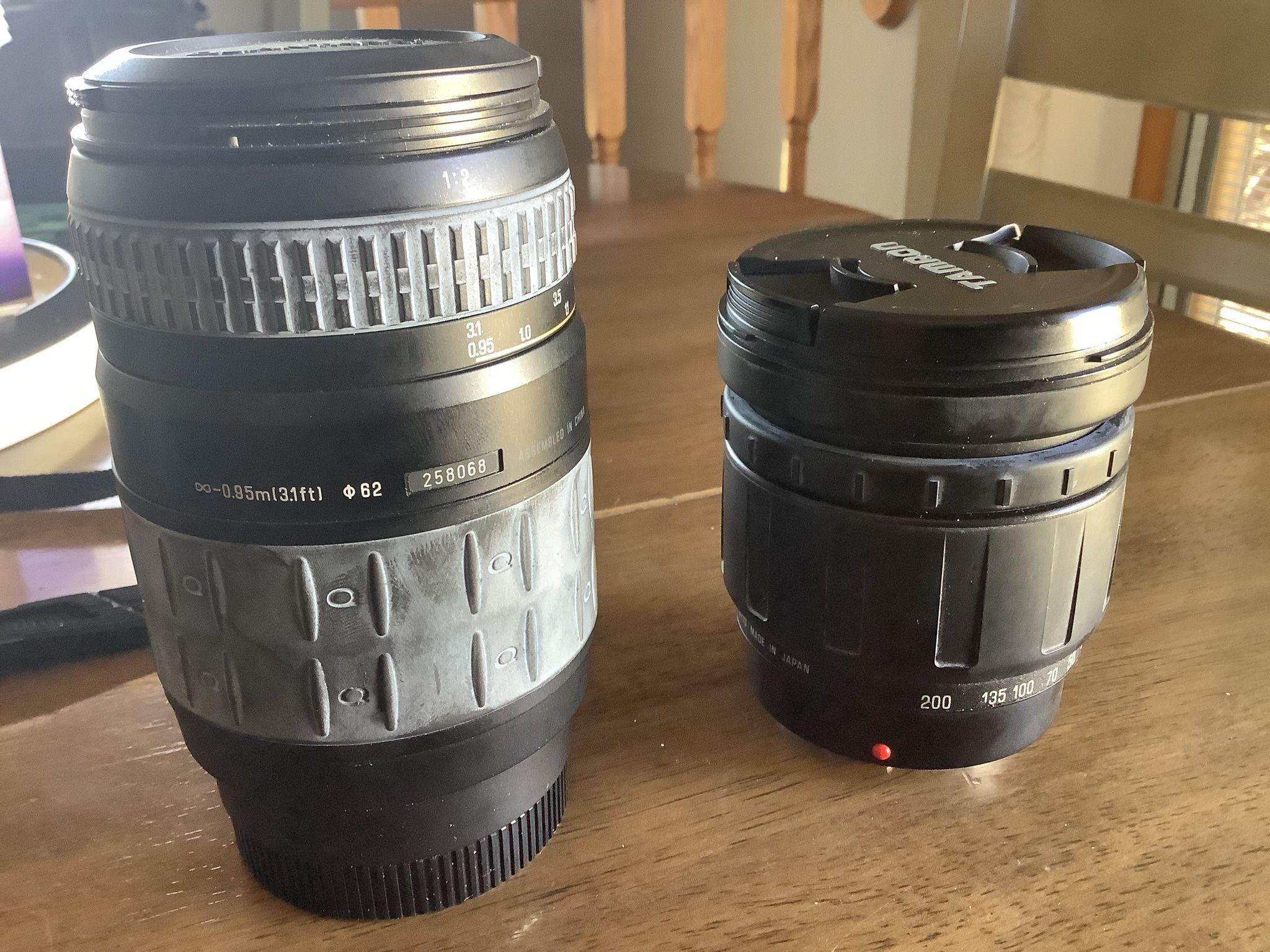 Quantaray 70–300 mm, Tamron 28–200 mm zoom lenses. Minolta maxim 300 SI 35 mm. Camera may need repair. Lenses are the real sale items here. Perfect if you’re looking to expand your photography equipment or just getting started, this would be a good investment.