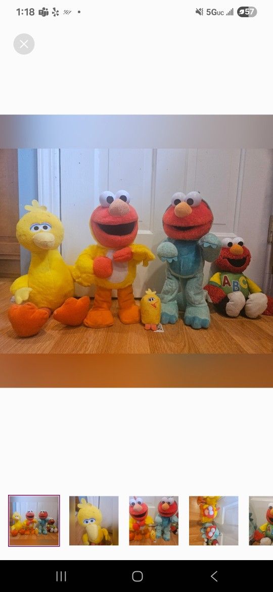 see pics of used itens... big bird can be thrown in the wash... ABC is in the roughest shape looks wise also speaks Spanish both dinosaur and chicken elmo electronics and movements work.. some spots Charming Sesame Street plush toys featuring vibrant characters. Soft and huggable for endless fun. chicken and dinosaur hardly used really just moved back and forth on shelf