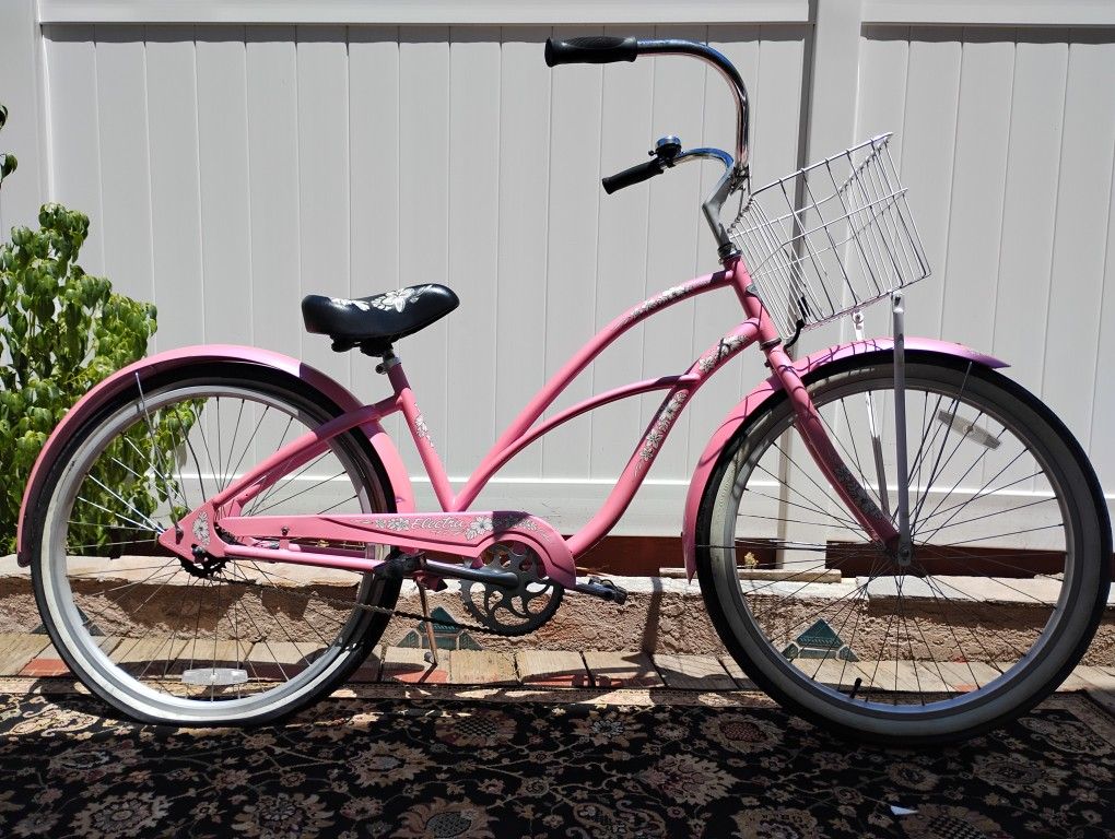 Electra women's beach cruiser. This bike is very light, aluminum frame. 26-in tires Front basket And a beautiful original Pearl Pink Paint. Selling for $140 work best offer!!
