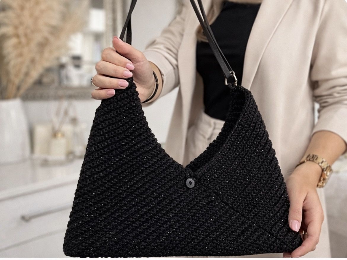 Handmade Crochet Black Everyday Shoulder Bag