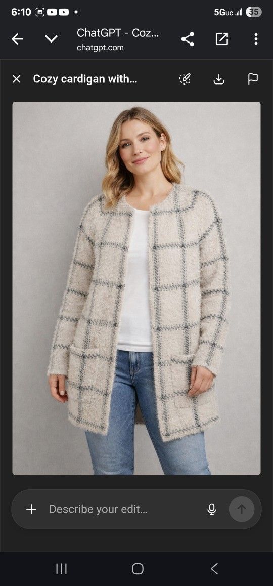 Women's Retrology Cardigan in a white and black or gray plaid pattern