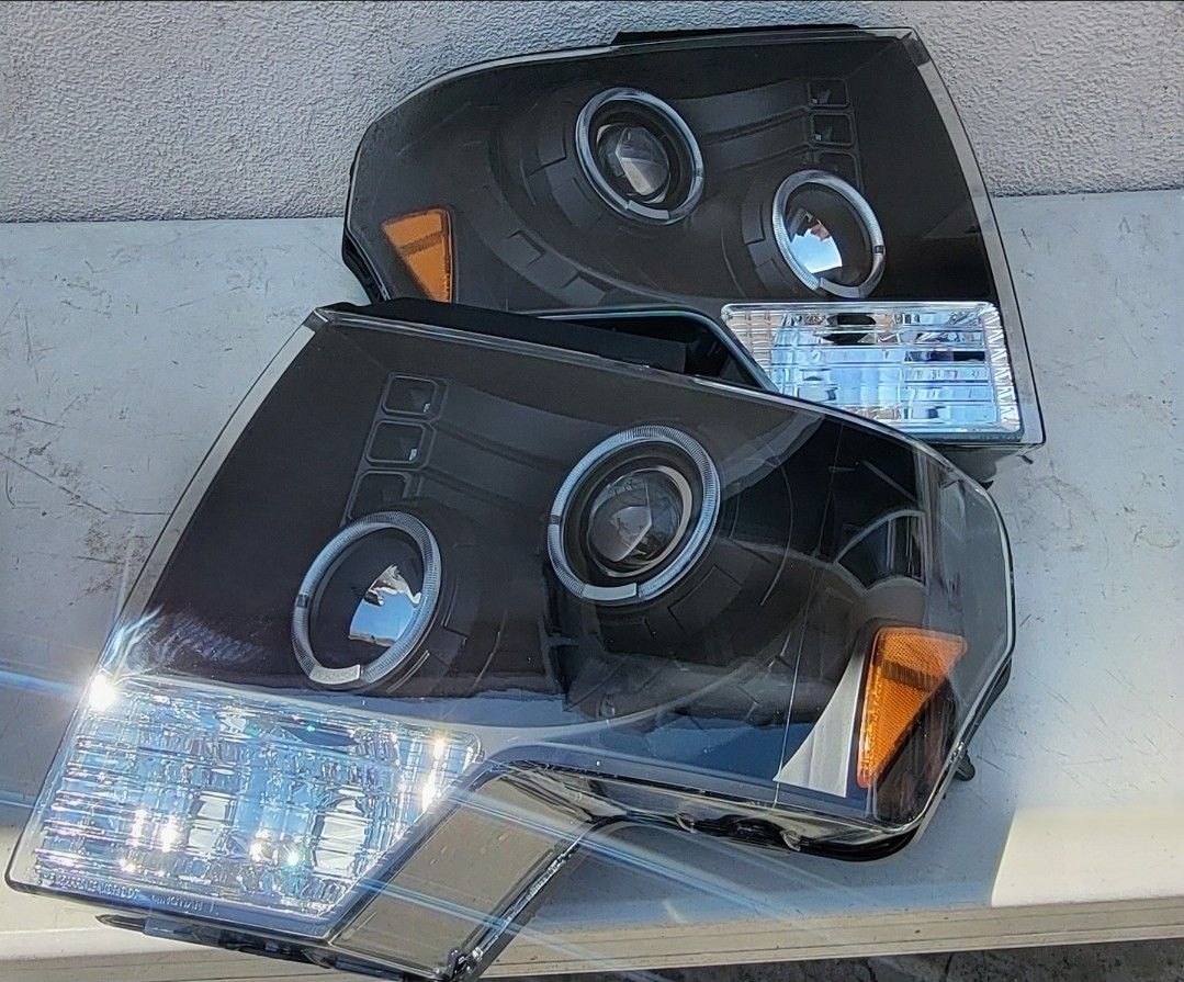 Pair of Black Housing LED Dual Halo Projector Headlights 09-14 Ford F150 Small Melting on the lens, Sold As Is Se Habla Español