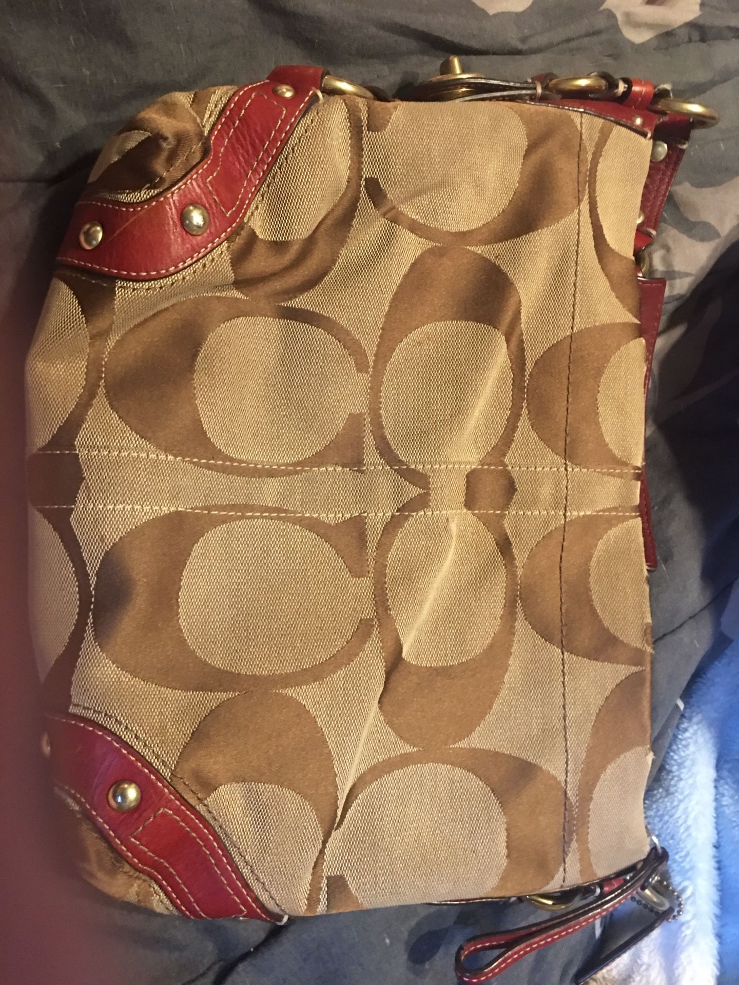 Authentic coach bag cloth with leather trimmings and leather handle