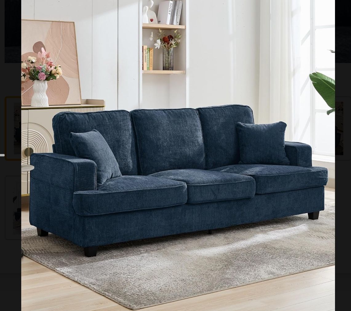 New in box Korser Couch for Living Room, 89" Sofa Cloud Couch with Comfy Extra Soft Deep Seats in Chenile, Modern 3-Seater Couches for Living Room Bedroom Apartment Office, Blue