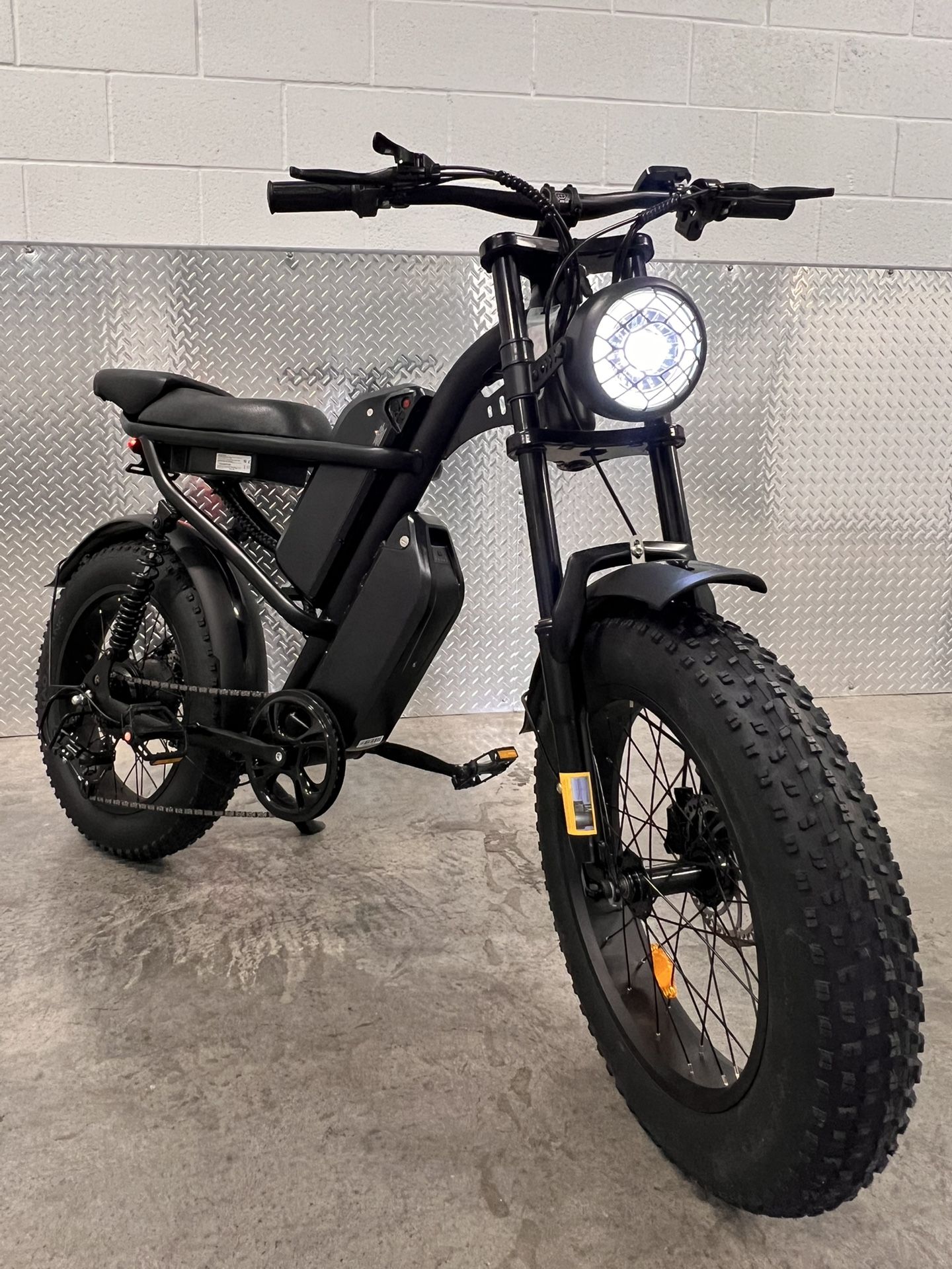 750W Motor Electric E-Bike 30ah Dual Battery Long Range 5’1 to 5’10 Rider 32mph Top Speed 7 Speed Shimano Derailleur 5 Speed Pedal Assist 2 USB Hook up High Quality Disc Brakes 20x4.0 Fat Tire Coffee Can size headlight Taillights Blinkers 32 inch high seat 30-70 miles range 300lb weight capacity