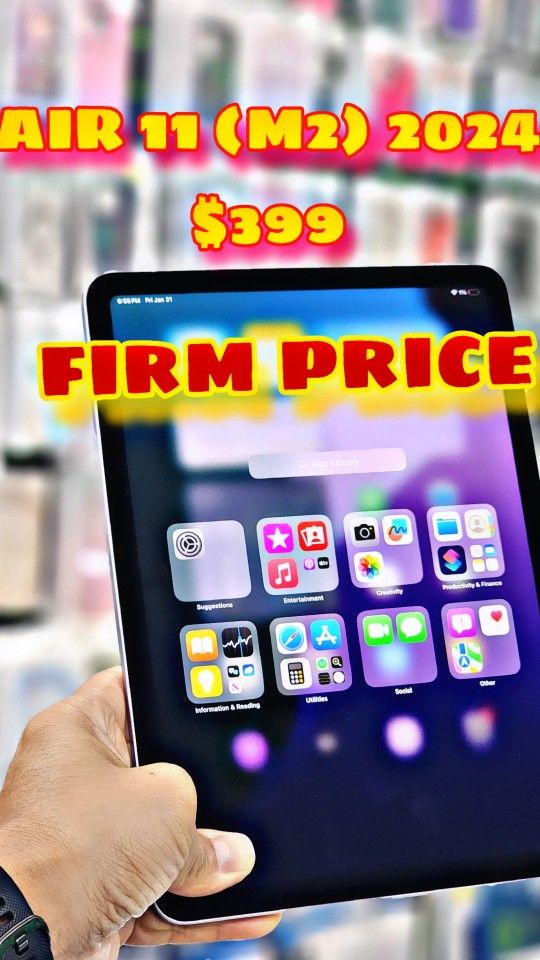 Apple iPad Air 11" (M2) β Power Meets Elegance! π π₯ Built for Apple Intelligence β Experience next-level performance! πΊ 11β Liquid Retina Display β Stunning visuals, vibrant colors! πΈ 12MP Front & Back Camera β Perfect for photos, videos, and FaceTime! β‘ Wi-Fi 6E & All-Day Battery Life β Stay connected longer! π Touch ID for Security π Mint Condition β Like New! π Charger Included π‘οΈ 90-Day Warranty π° All this for ONLY $399! π² Limited Stock β Grab yours today!