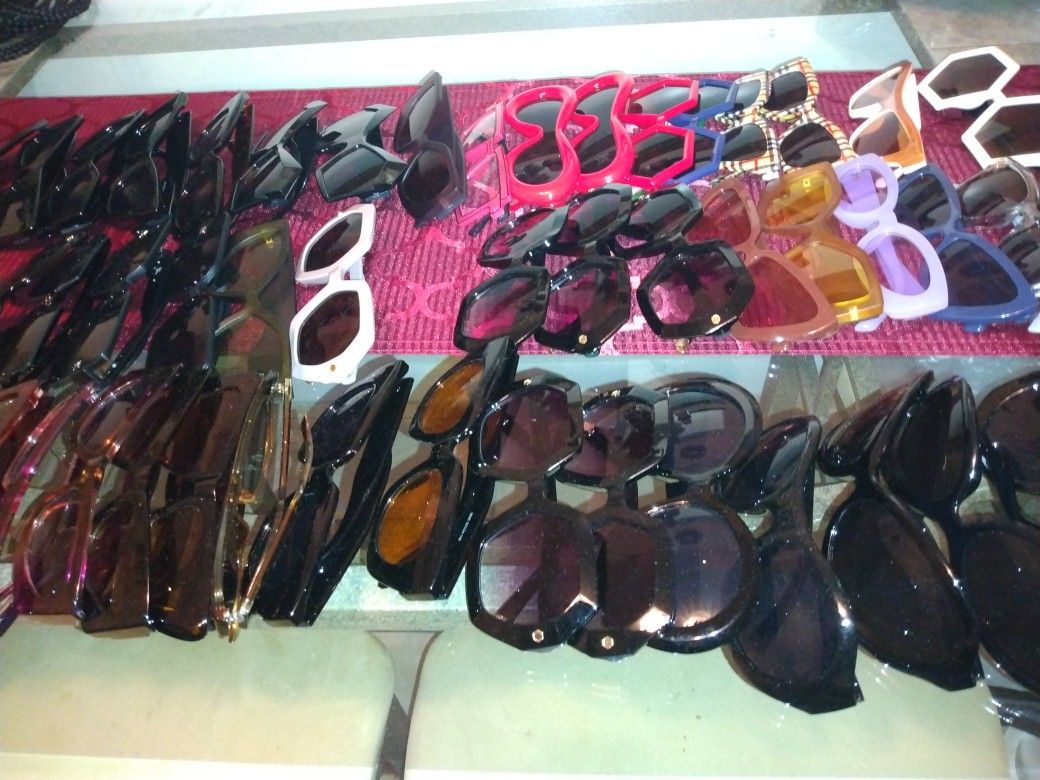 100 pairs of bulk sunglasses at 5.00 each or one pair for 20.00 Large assortment with cases included.. ALL NEW NOT USED