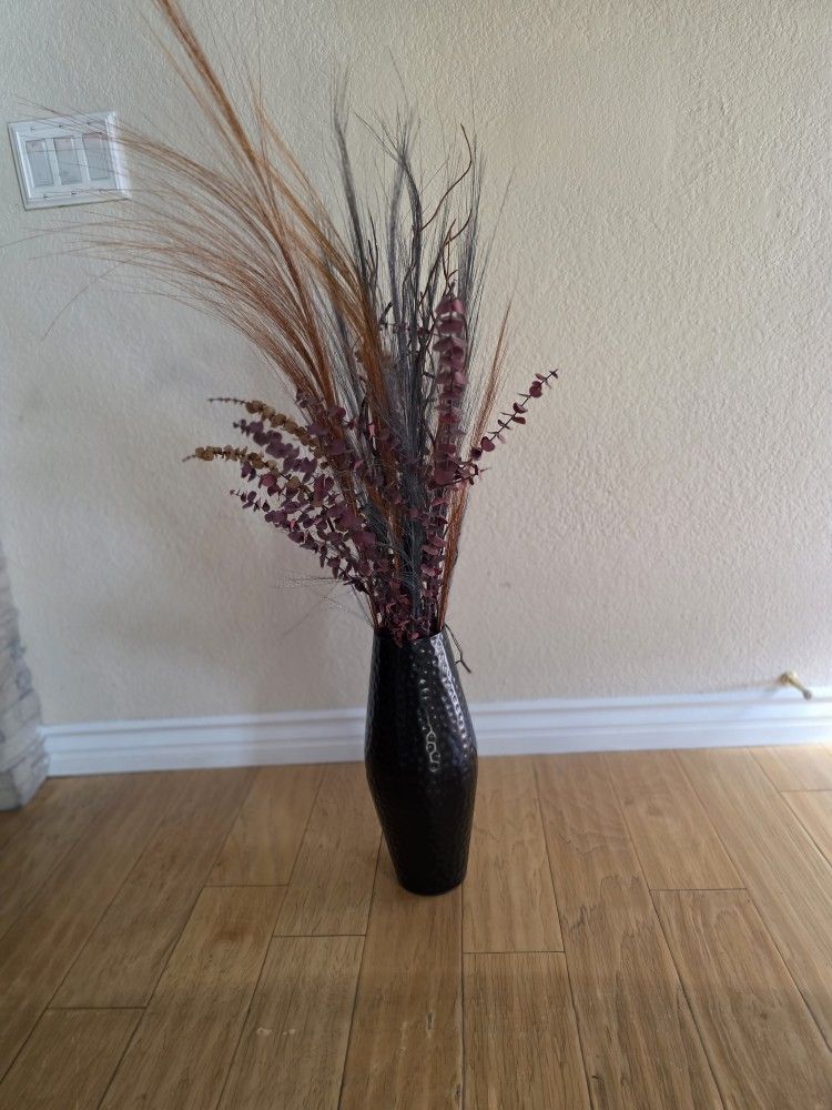Hammered Metal Vase With Dried Flowers. Vase 16 Inches Tsll.