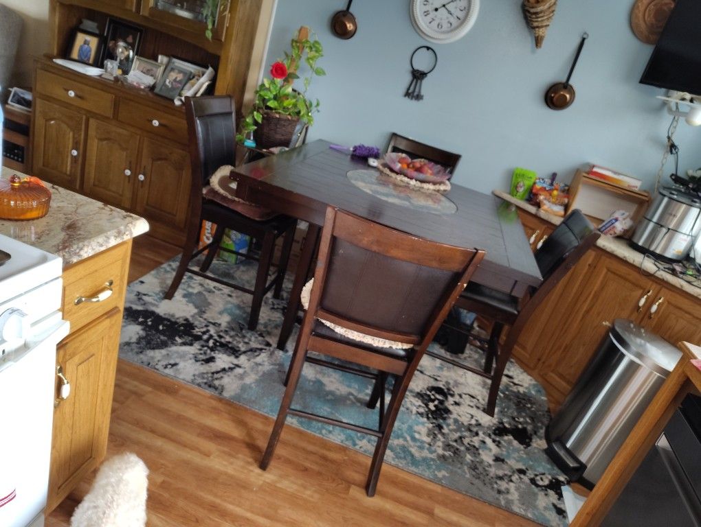 Med/Large Kitchen Table, brown With Marble Center, 4 Chairs With Extra Holding Space Underneath.