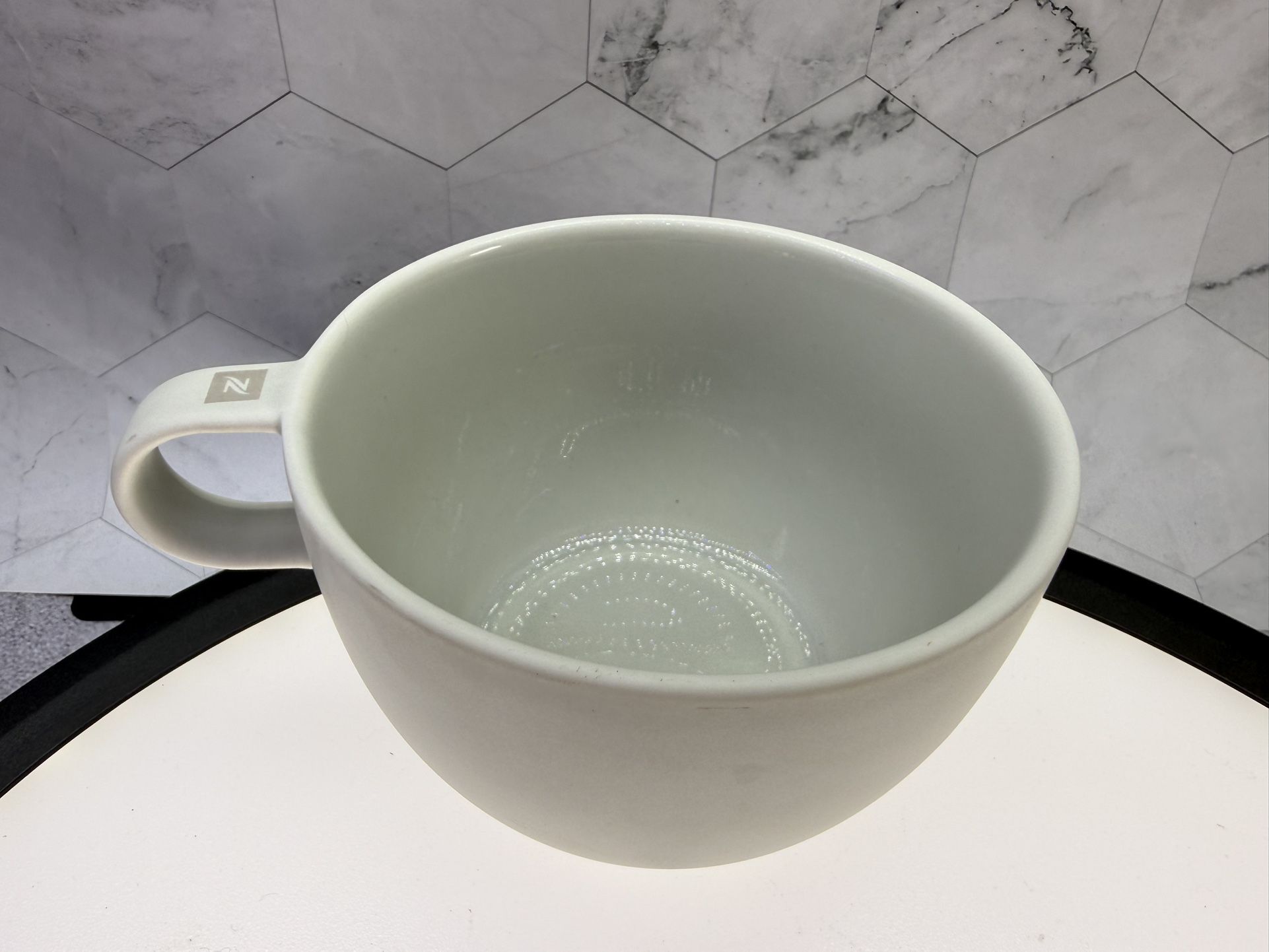 Ships for $6.99 (1) Nespresso Barista Collection, Cappuccino Large Cup in Light Gray 13 Fl Oz. This high-quality porcelain cups is designed to showcase milk coffees like cappuccinos and flat whites, featuring a modern take on the classic cup shape. High-quality porcelain with a matte finish on the exterior and a glossy finish on the interior.A round, classic style with a subtle Nespresso logo on the top of the handle. Dishwasher safe. Five available for purchase.