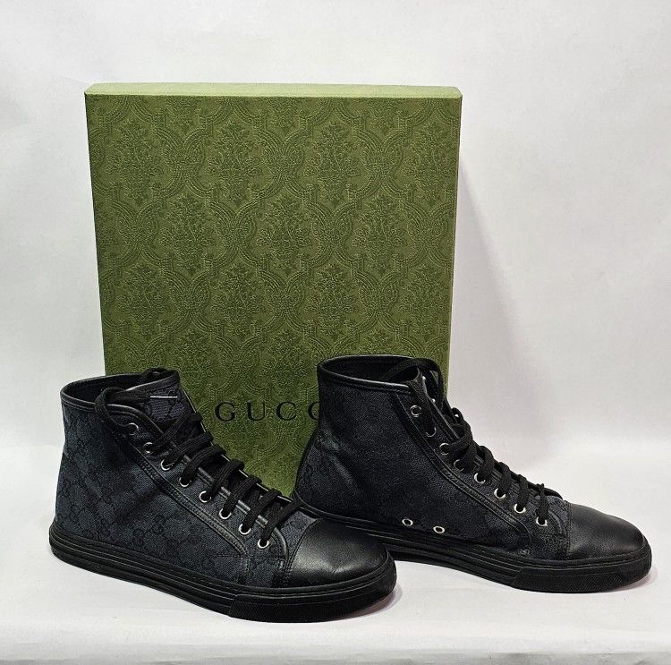 Black Gucci GG Canvas High Top Sneakers Size 8