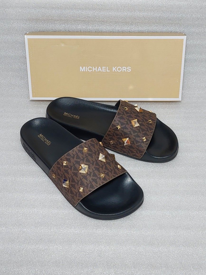 Michael Kors Designer Sandals Slides. Brown. Brand New In Box. Size 9 Women's Shoes. Authentic