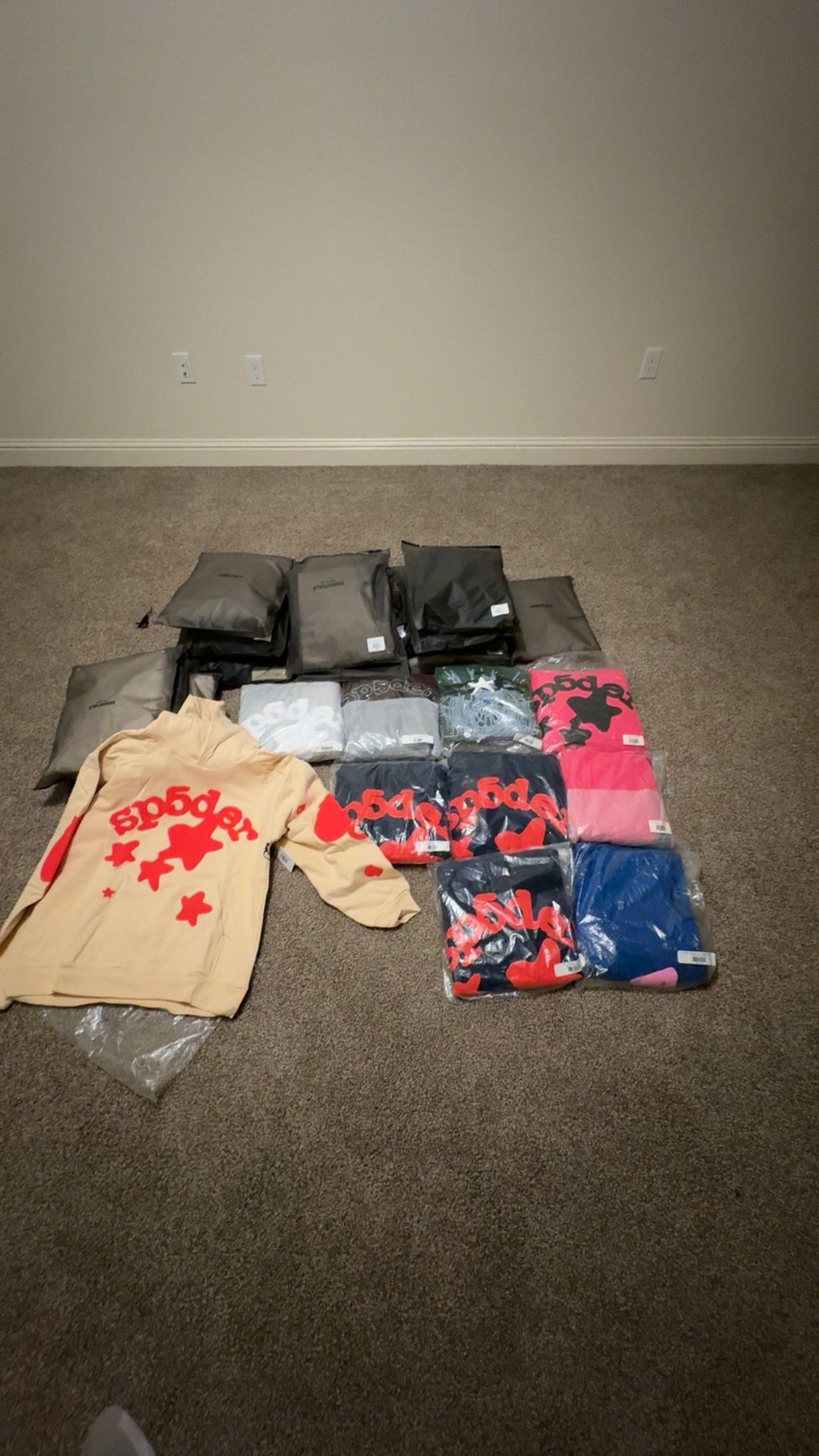 spider hoodies all sizes essentials all sizes spider hoodies 120 essentials 70 all brand new in bags let’s get yall right for the new year!