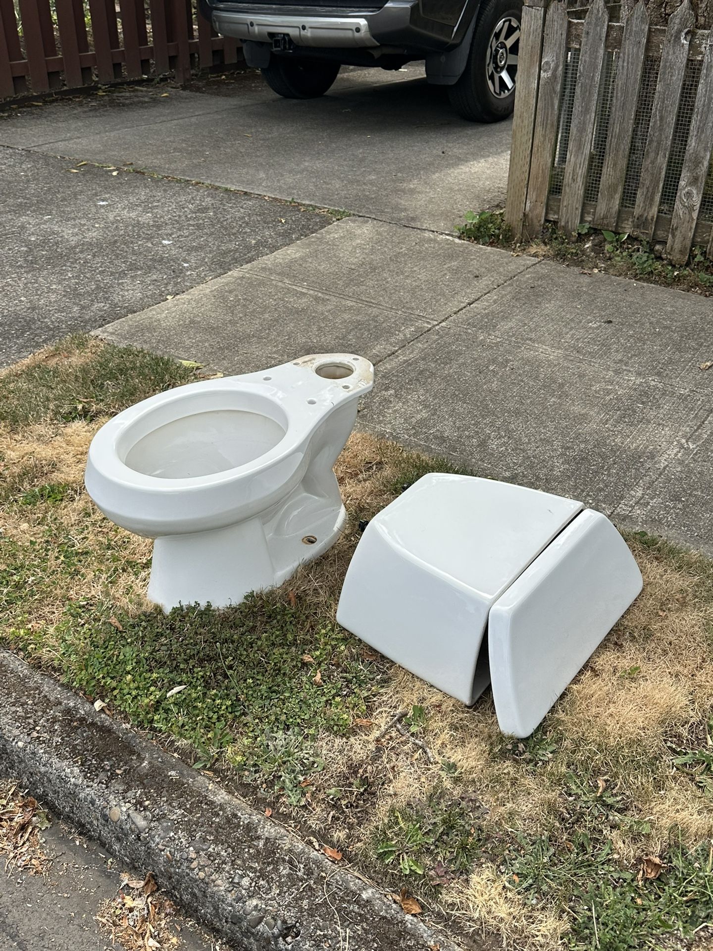 Free toilet on the curb. Come pick up. Posting will be removed once it’s gone.