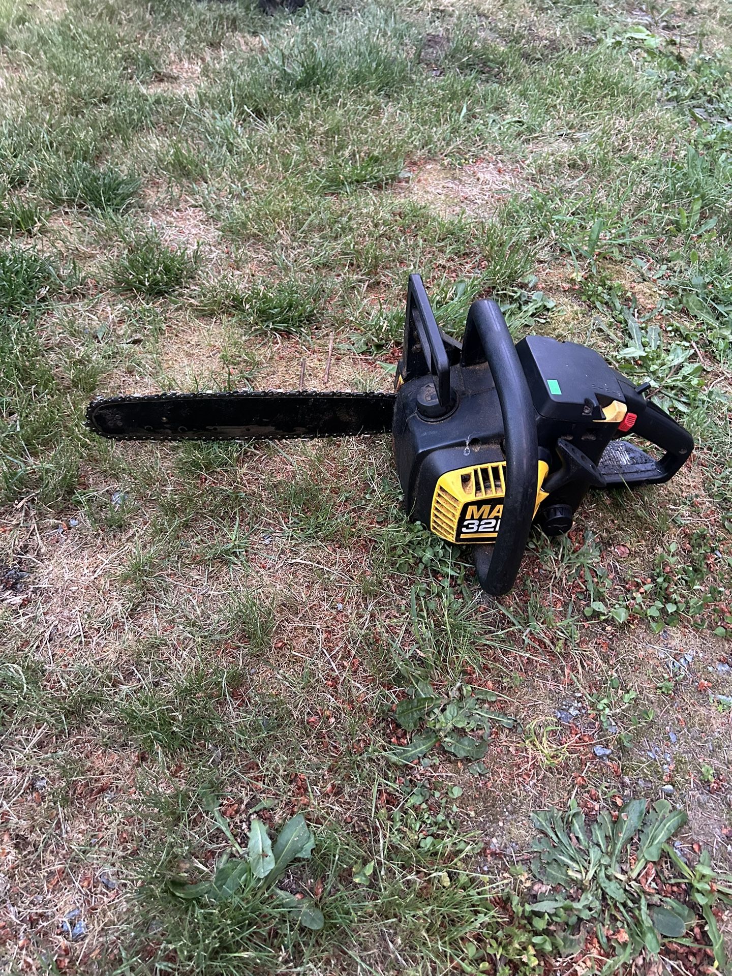 MAC 3214 32cc Chainsaw, chainsaw works but it stalls after a couple seconds off starting up, could probably need the carburetor cleaned or replaced, just fix that issue and you have a good running chainsaw, $250 OBO, thanks