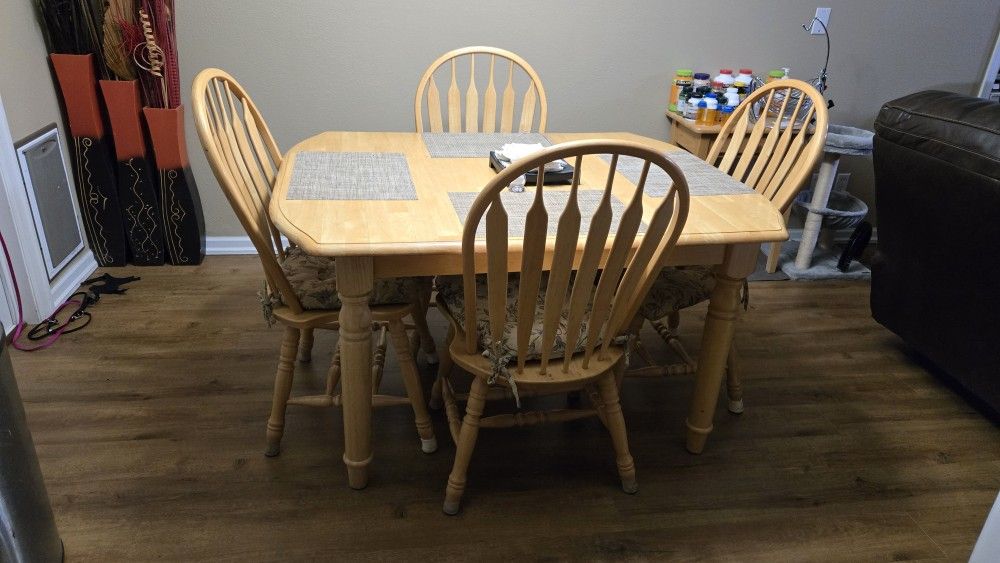 Family dining table, heavy use but functional. Seats 6 with extension, remainder in storage. 70$ OBO