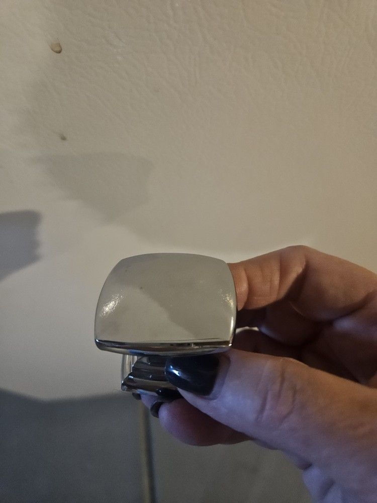 Set of 8 modern square cabinet knobs in chrome finish. Sleek, contemporary design — great for bathroom vanities, kitchen cabinets, or furniture updates. • 1.5" square • Approx. 1.25" projection • Chrome / polished finish • Used, very good condition • Screws not included (standard cabinet screws) Selling as a complete set only.