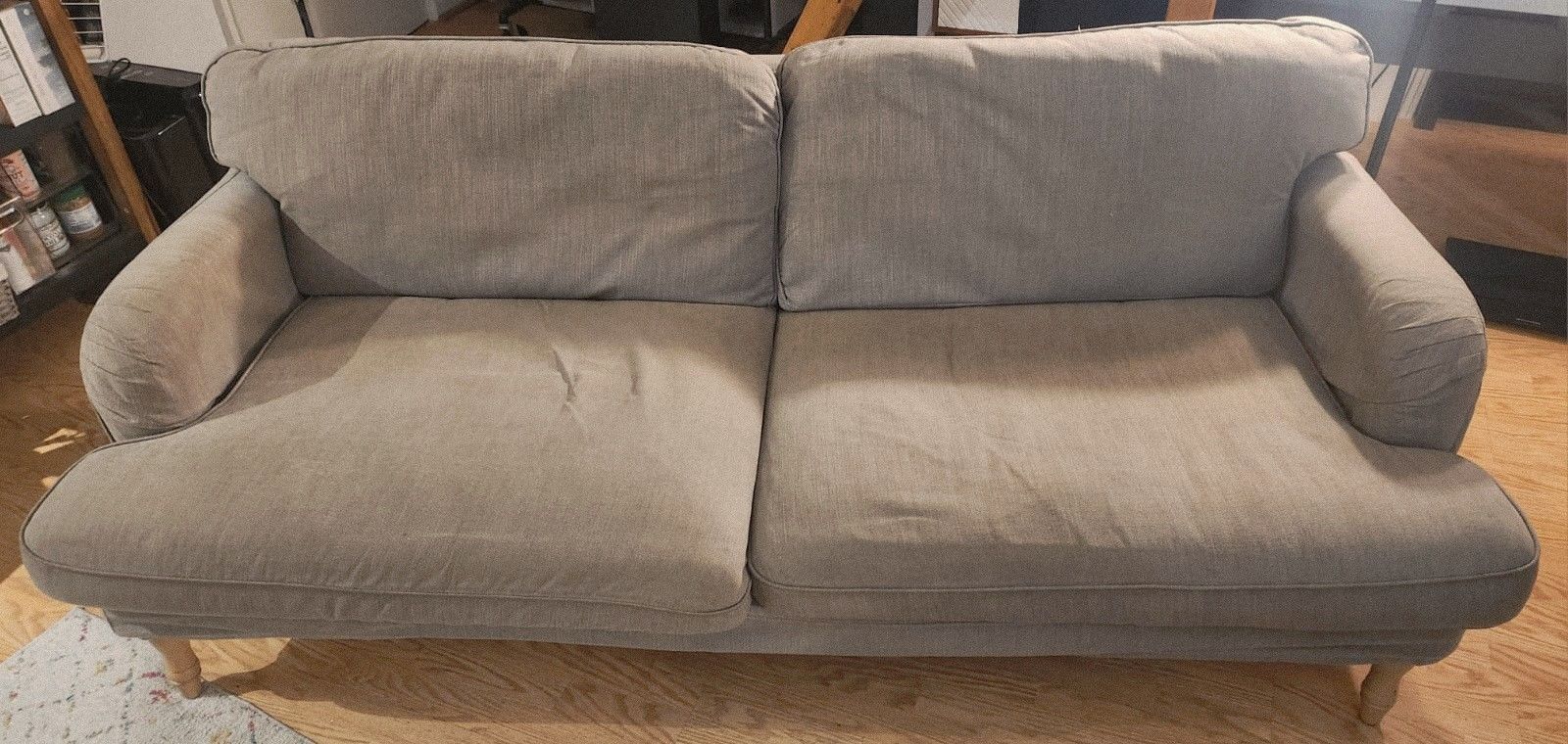 77inch long, 37inch depth. No pets in the apt, the sofa was never stained. Ground floor apartment pick up. No stairs. West village.