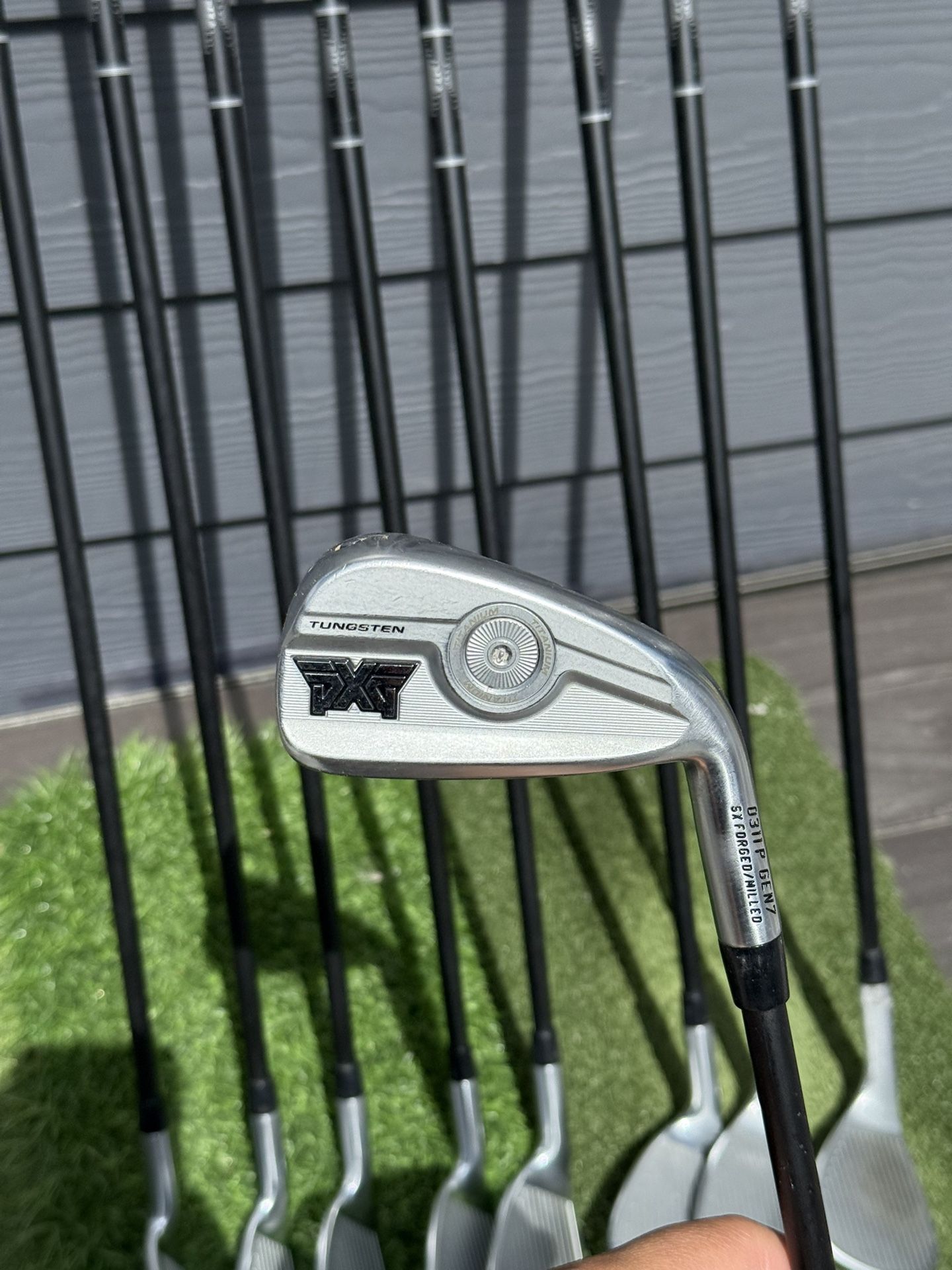 Excellent set of irons ready to game. These are very high performing while being very forgiving. PXG 0311P Gen 7 (latest generation) irons, 5 - GW. Wedges are the latest Sugar Daddy III, in 52 and 58. Shafts are all Mitsubishi MMT 80g Stiff Graphite. Grips are Golf Pride midsize. Standard specs. FREE bag of your choice between a Titleist quiver bag (no legs), Titleist Carbon stand bag, or classic Jones carry bag. Open to trades for equivalent condition and generation gear Titleist Ping Callaway TaylorMade Mizuno.