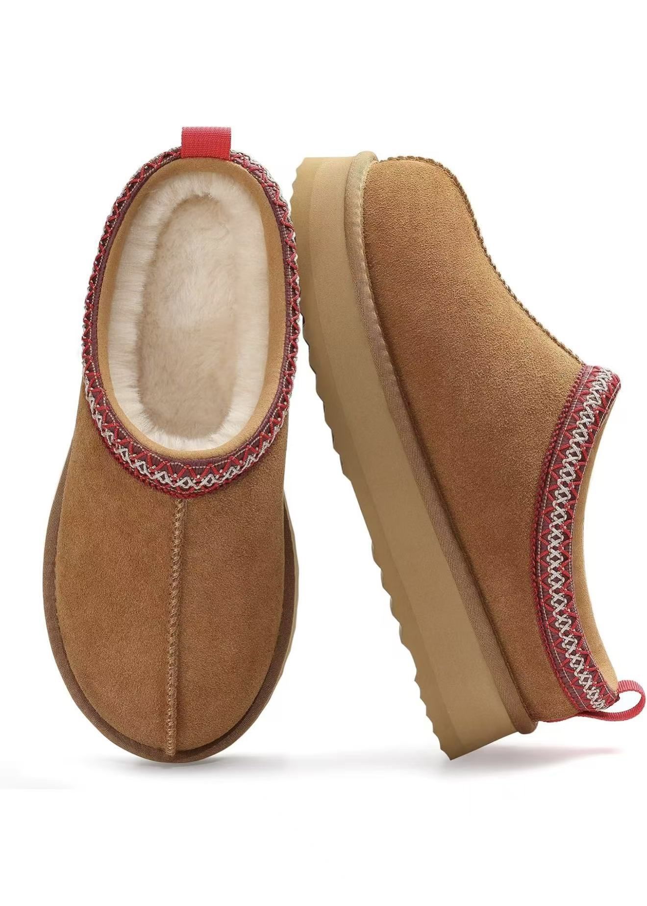 Genuine Suede Platform Slippers for Women Fuzzy Winter Warm Shoes Indoor Outdoor, Size 7
