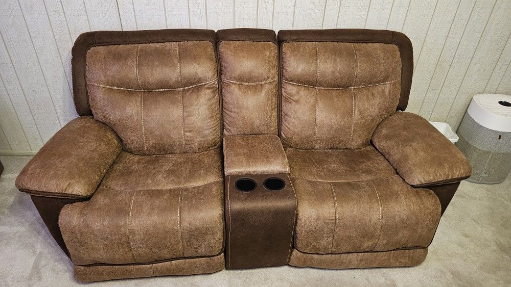 Love seat with cup holder storage box and full size couch manual recliners 900.00 OBO cash only thank you
