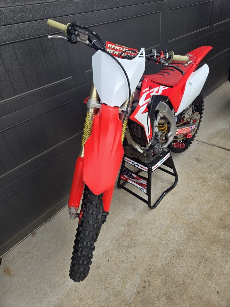Honda crf 450r Brand new wheels,chain,sprockets. Headset,swing arm and linkage bearings just replaced. Has factory connection suspension and linkage. Works connection clutch perch.