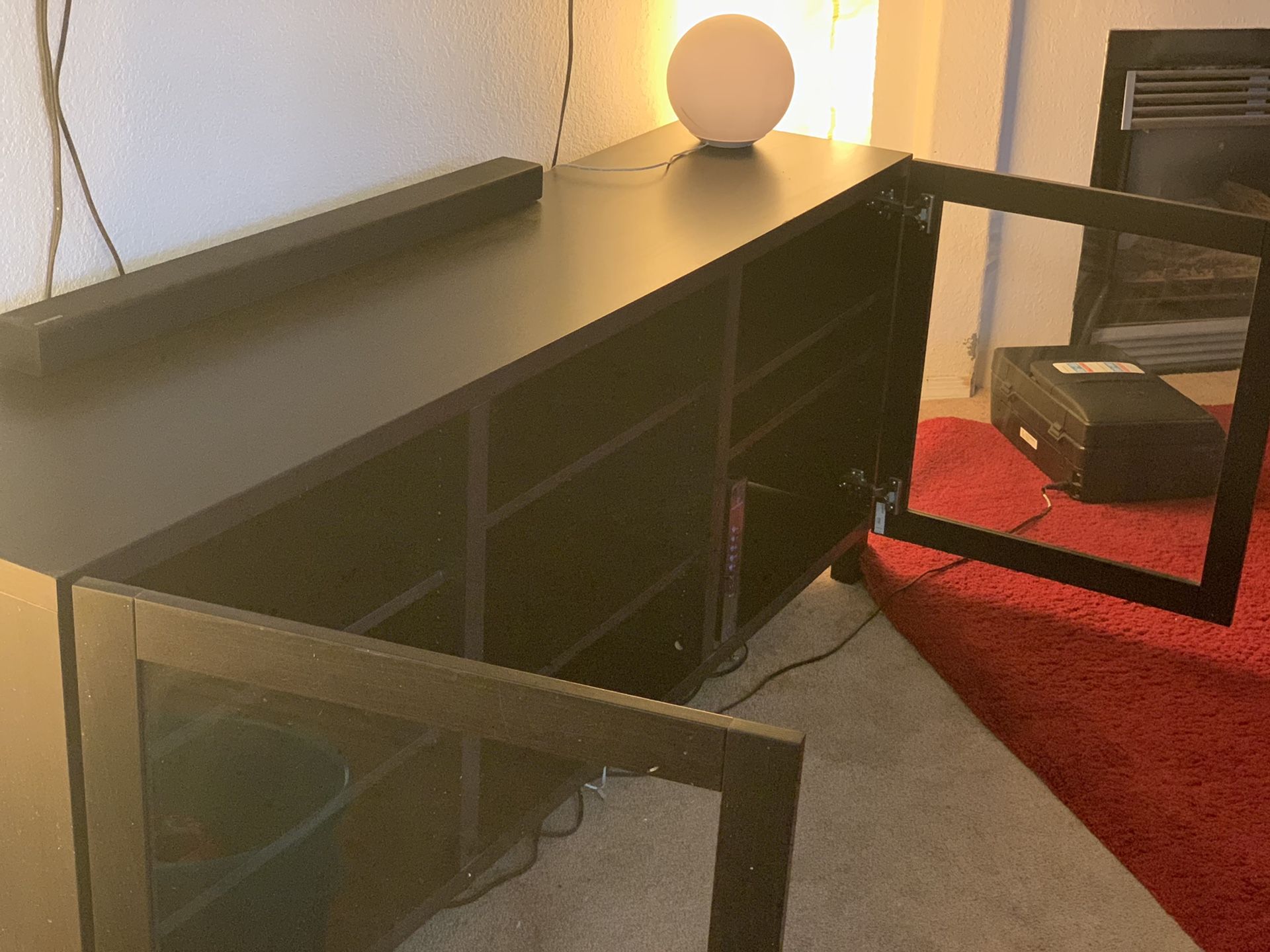 Dark wood IKEA entertainment center