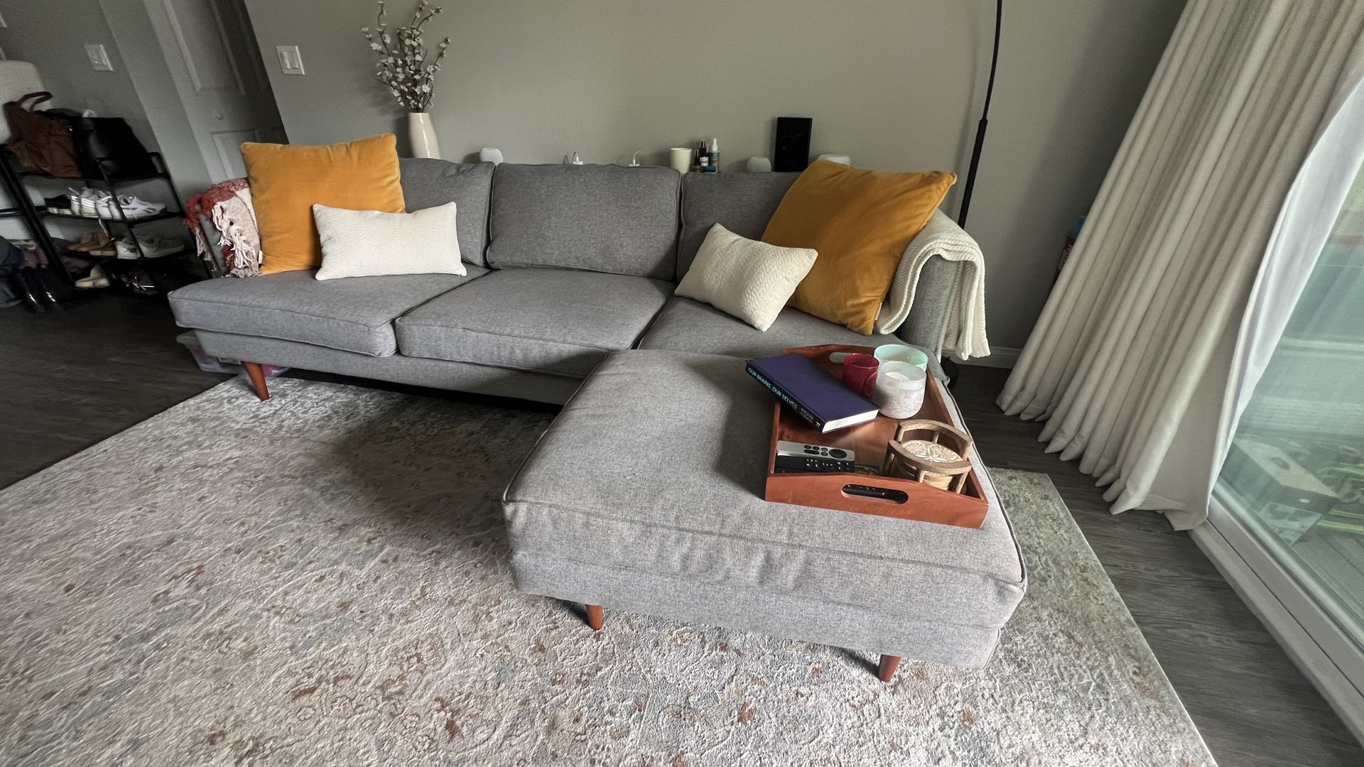 A timeless design in a neutral color; Joybird makes great furniture. This piece blends in well to most decor. ~95w x 35d x 33h ~Bought from original owner 1 year ago ~Non smoker household ~Covers laundered 2-4 times a year ~Cushions rotated 2-4 times a year ~Matching Ottoman (cover not removable for cleaning unfortunately) ~Removable legs (otherwise doesn’t come apart) Condition: Wooden legs show standard wear. Some discoloration from the sun on the sides and a pineapple juice stain on the ottoman, as shown. I’m sure it’ll come out with a good clean, I just never got around to it. Priced fairly for the condition but open to offers. DM me for more info. Need gone by end of February.