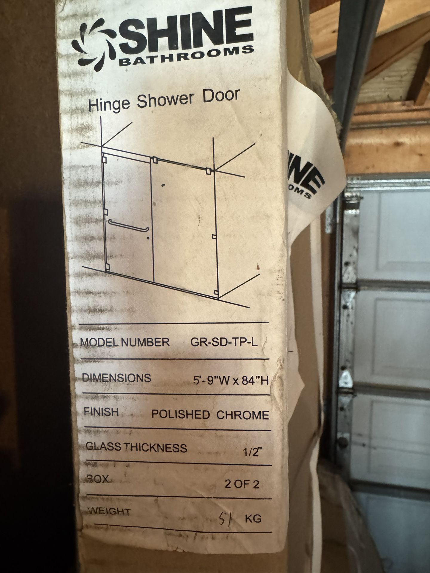 4 available brand new glass shower doors. Dimensions shown in picture. $75 ea