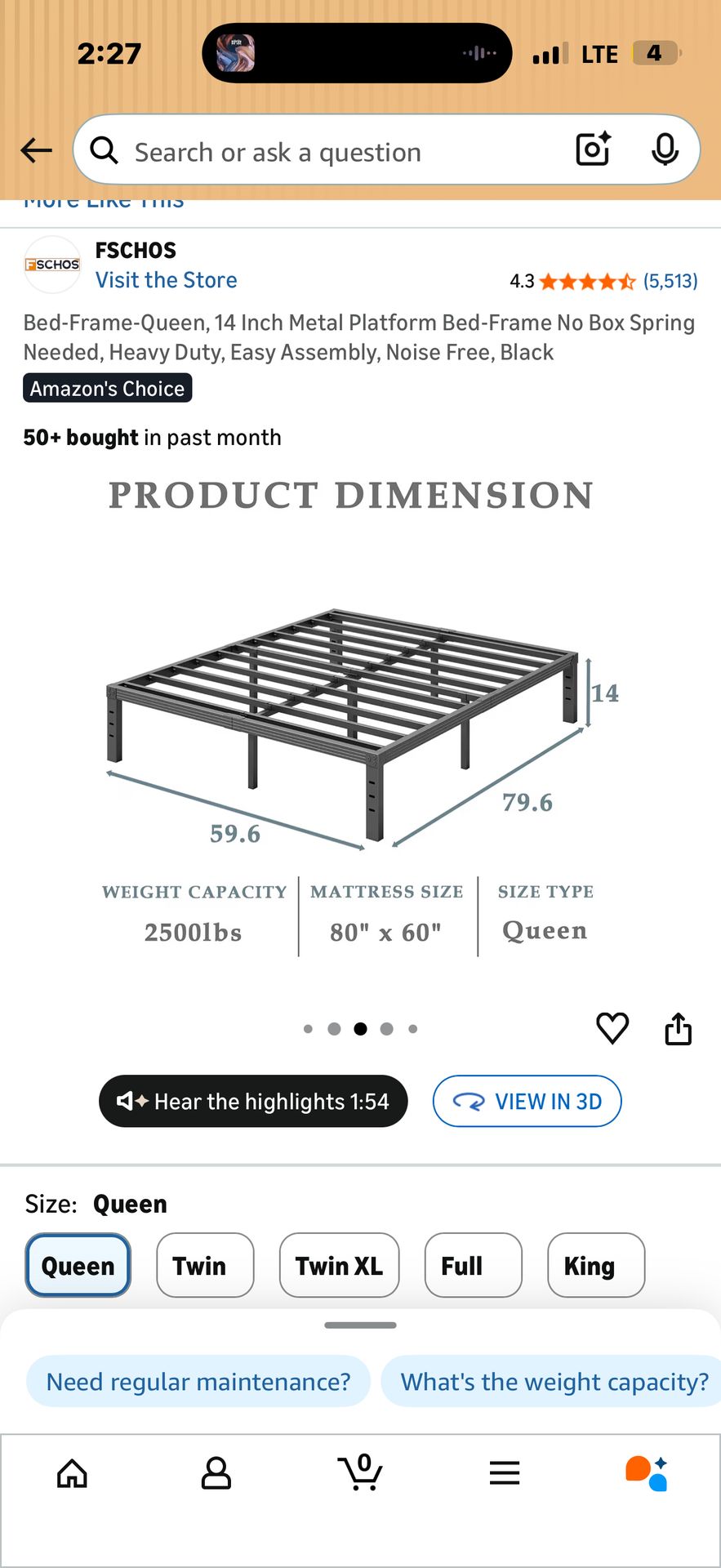 Queen bed frame - METAL (14”)