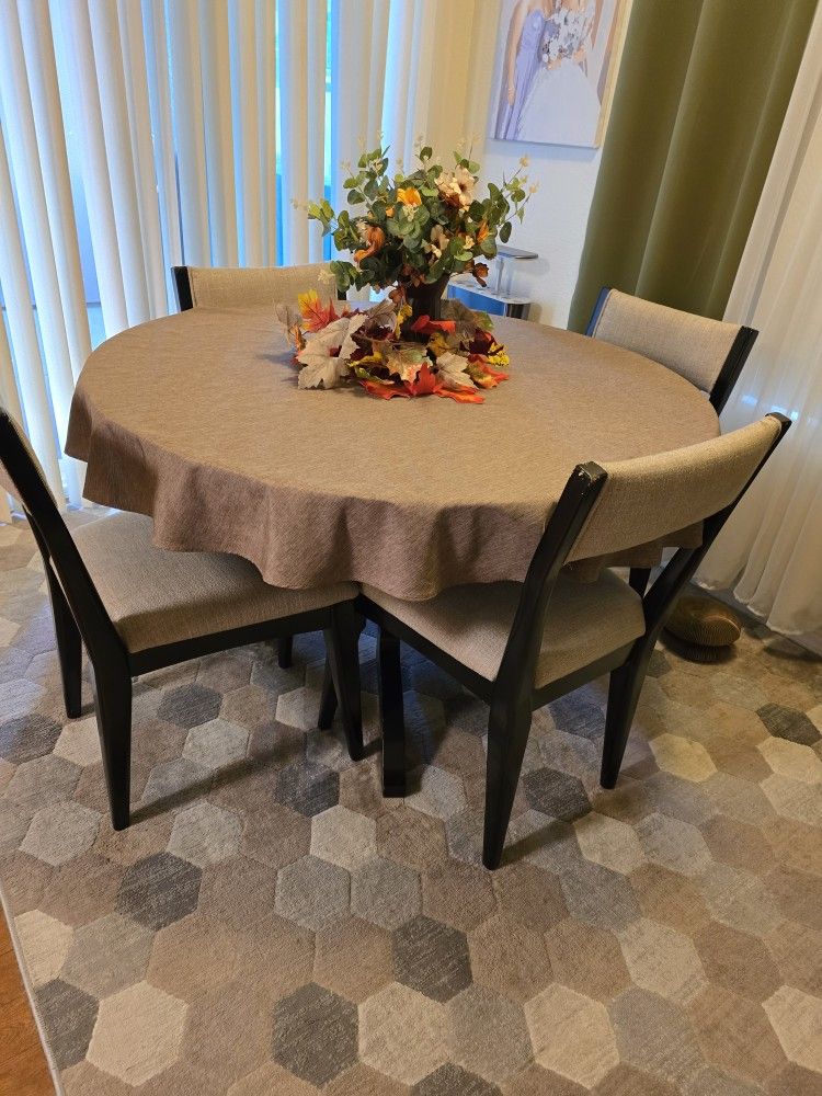 Dining Table with 4 chairs. Solid wood. Great condition. Moving and can't take with me.