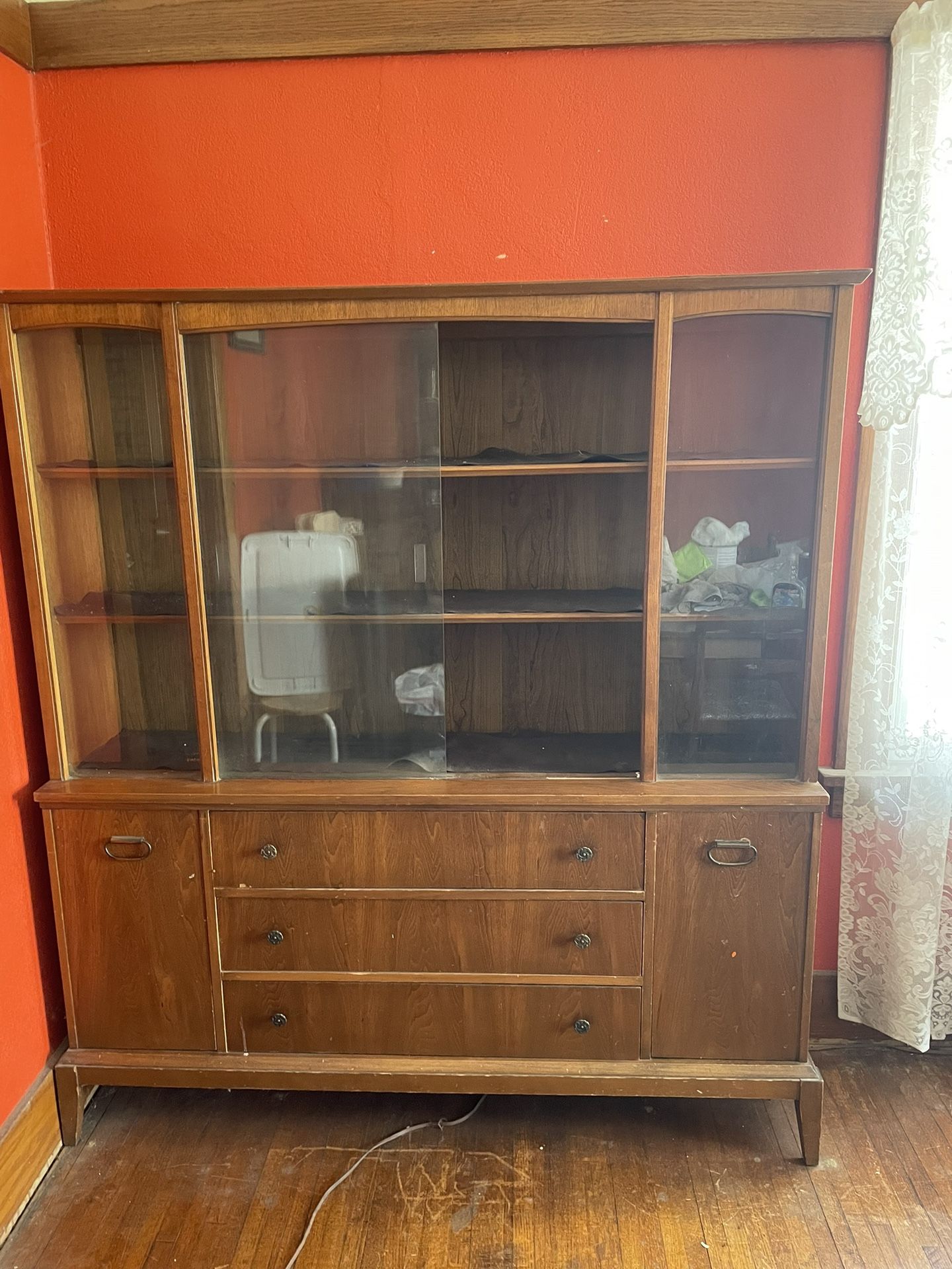58.5 inches wide 15.25 in deep drawers 10.5 in deep shelves 66.25 in tall