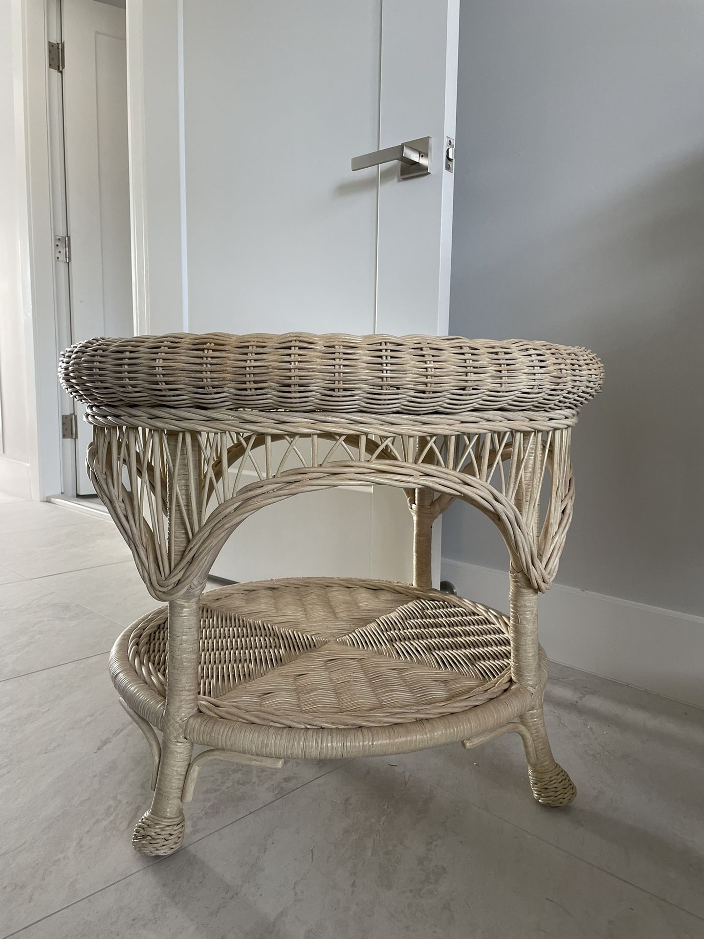 Antique Rattan Side Table - Circa 1960s Width 28” Height 21” NO DAMAGE