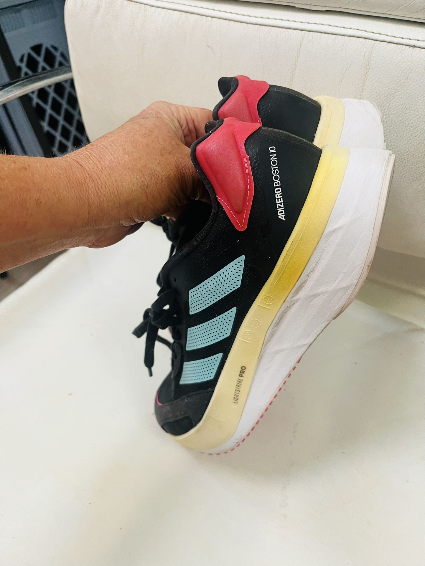 These are beautiful shoes I didn’t really wear they addias Boston 11 high heel running shoe black @pink size women’s 8.5 I paid 150