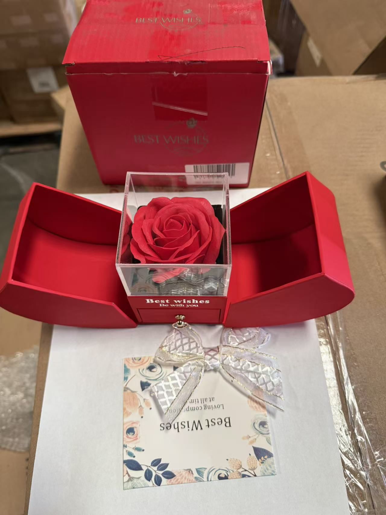 We have 2 different color of this gift. Red or blue come with the gift box and flowers, necklace and greeting card