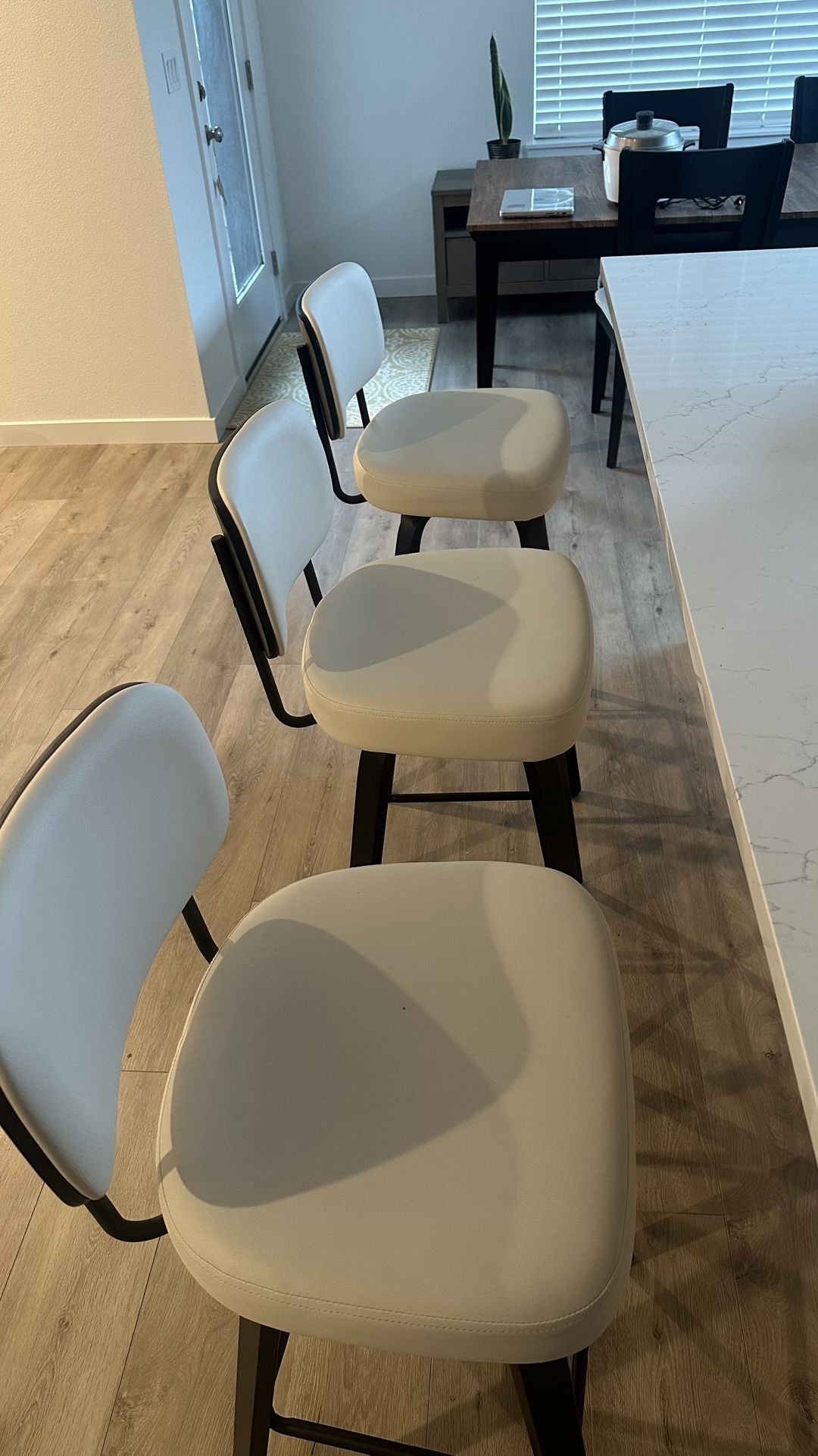 Three White Faux Swirl Leather Bar Stools
