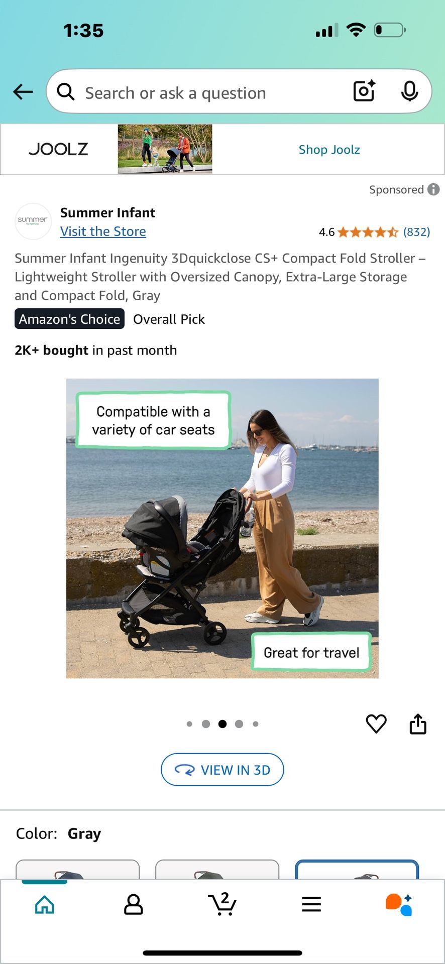 Summer Infant Ingenuity 3Dquickclose CS+ Compact Fold Stroller – Lightweight Stroller with Oversized Canopy, Extra-Large Storage and Compact Fold, Gra