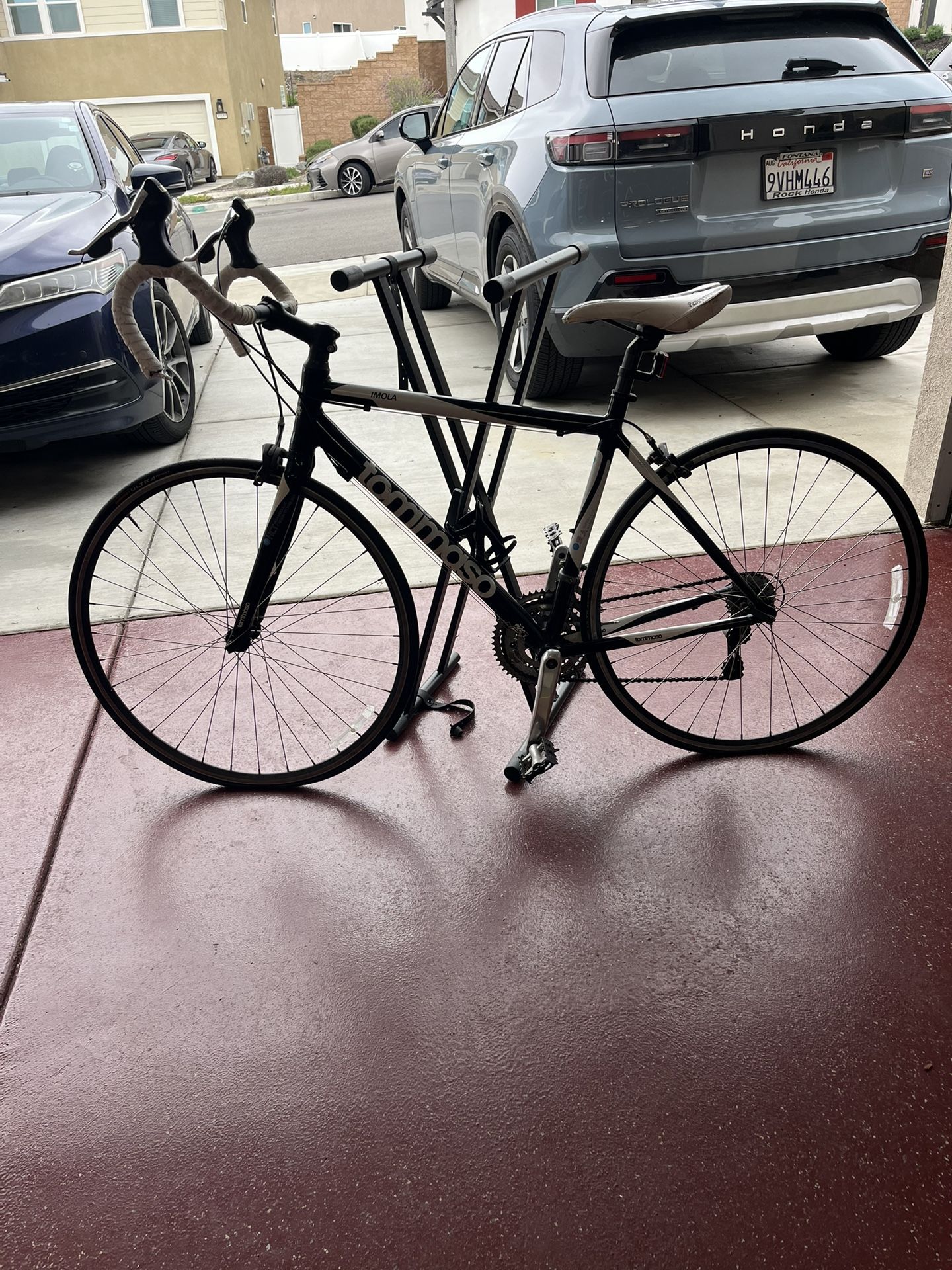 Im selling my Racing Bike Tommaso because I don’t use it anymore. This is a real road bike light weight aluminum frame with a carbon fork smooth ride and reliable components. Adult size, normal cosmetic wear from use, nothing bent or cracked, rides solid and ready to go. Come and take a look!