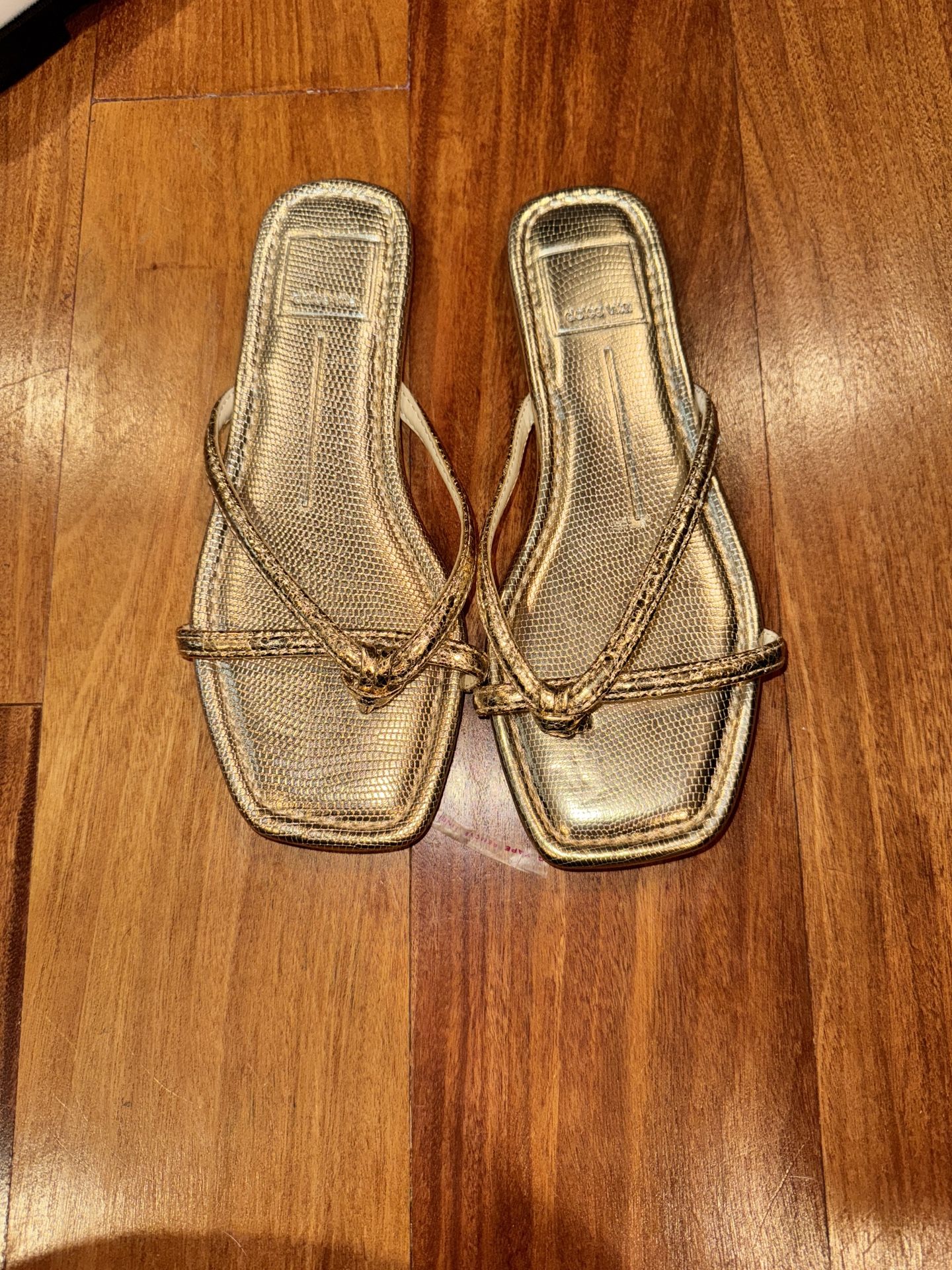 Size 6 NWOB The Dolce Vita LUCCA exudes cool and carefree style with its minimal flat sandal design. Featuring a strappy look and a range of colorways from neutrals to metallics, this sandal is perfect for versatile wear. The synthetic upper and eco-conscious materials, including a recycled synthetic outsole and water-based leather alternative lining, combine sustainability with fashion. Crafted for comfort and imported for quality, the LUCCA is an ideal choice for those seeking chic simplicity in their footwear. From the brand: LUCCA is cool and carefree. This minimal flat sandal has a strappy look and colorways for days—from neutrals to metallics. Synthetic Upper Recycled Synthetic Outsole Water-based Leather Alternative Lining + Sock Imported
