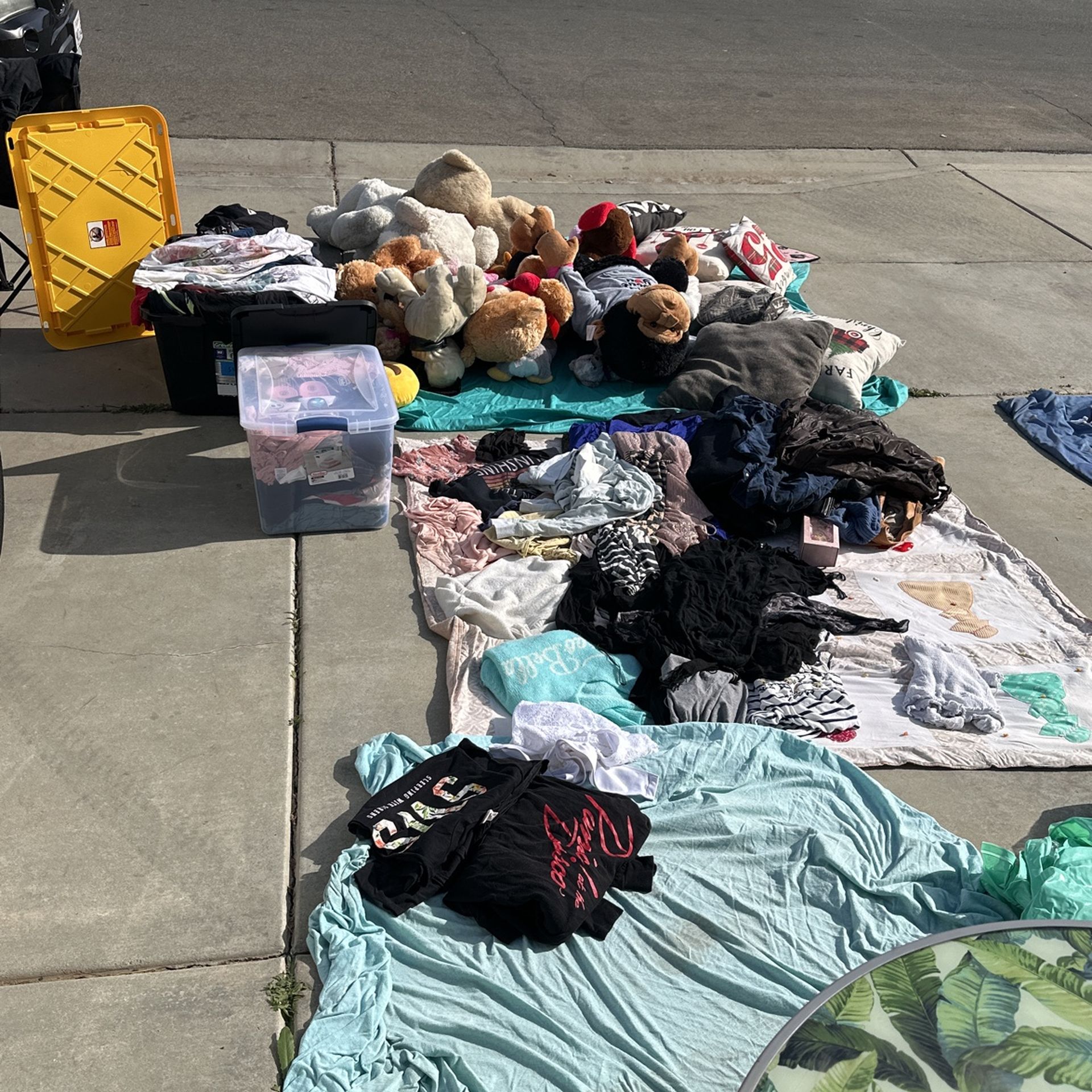 Lots of new clothes Furniture Plush toys Kitchen appliances Coffee bar Mirrors Picture frames Tires only 3,500 miles on them Book shelf with mirrors on the sides and in middle Text for address near rayan air port and 3 min away from west valley