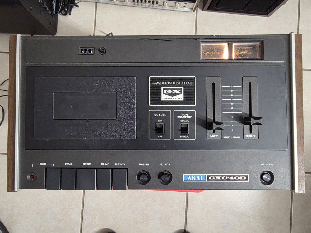 Got a Vintage Akai cassette deck model GXC-40D from the early 1970s. Player is going to need some service, power on, belts need to be look at probably need changing. It's made in Japan.