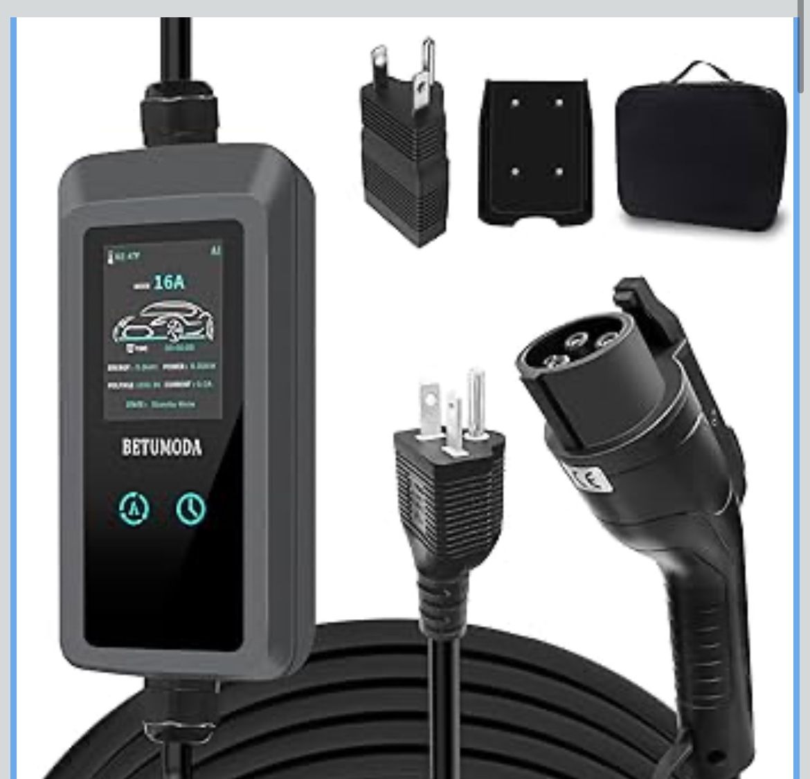 Level 1&2 EV Charger 2026 Upgraded, 110V–240V, 8-16Amp Adjustable Current & Timer, NEMA 5-15 & 6-20 Plug, 25Ft EV Charging Cable, SAE J1772 Compatible