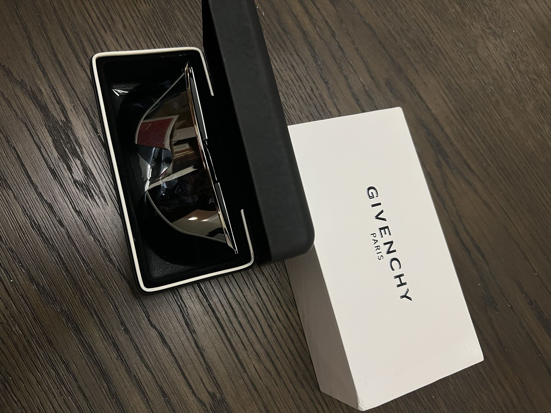 Brand new, never used pair of authentic Givenchy GV 7117/S 010T4 sunglasses. These feature a bold, modern shield/visor design with a sleek metal frame and dark single-lens style. High-end designer sunglasses with a futuristic, fashion-forward look. • Brand: Givenchy • Model: GV 7117/S 010T4 125 • Style: Oversized shield / visor • Frame: Silver-tone metal • Lens: Dark smoke tint, 100% UV protection • Condition: New / never worn • Authentic — Givenchy branding on frame and arms