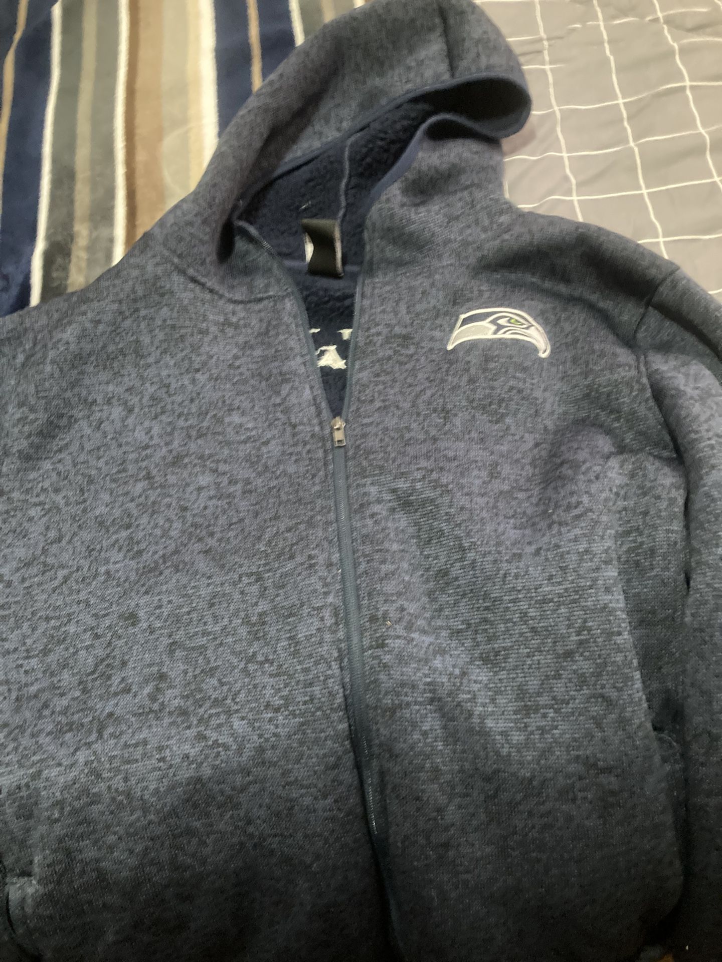 Seahawks fleece hoodie zip up. Like new. XL. Only worn a few times. It’s too large for me.