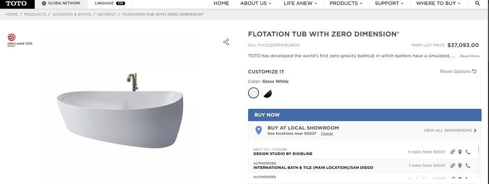 A rare opportunity to own one of the most luxurious bathtubs in the world. TOTO’s award-winning Flotation Tub creates a zero-gravity experience, promoting deep relaxation and wellness. Retail $25,000–$32,000. This piece is lightly used (one-time installation), no damage. Available for $15,000 OBO. Ideal for luxury remodels, spa projects, or high-end new builds. Bathtub-salvaged from a job, Used one time, not in box, NO DAMAGE, retails for $25,000-32,000. Flotation Tub with ZERO DIMENSION® SKU: PJYD2200PWEU#GW