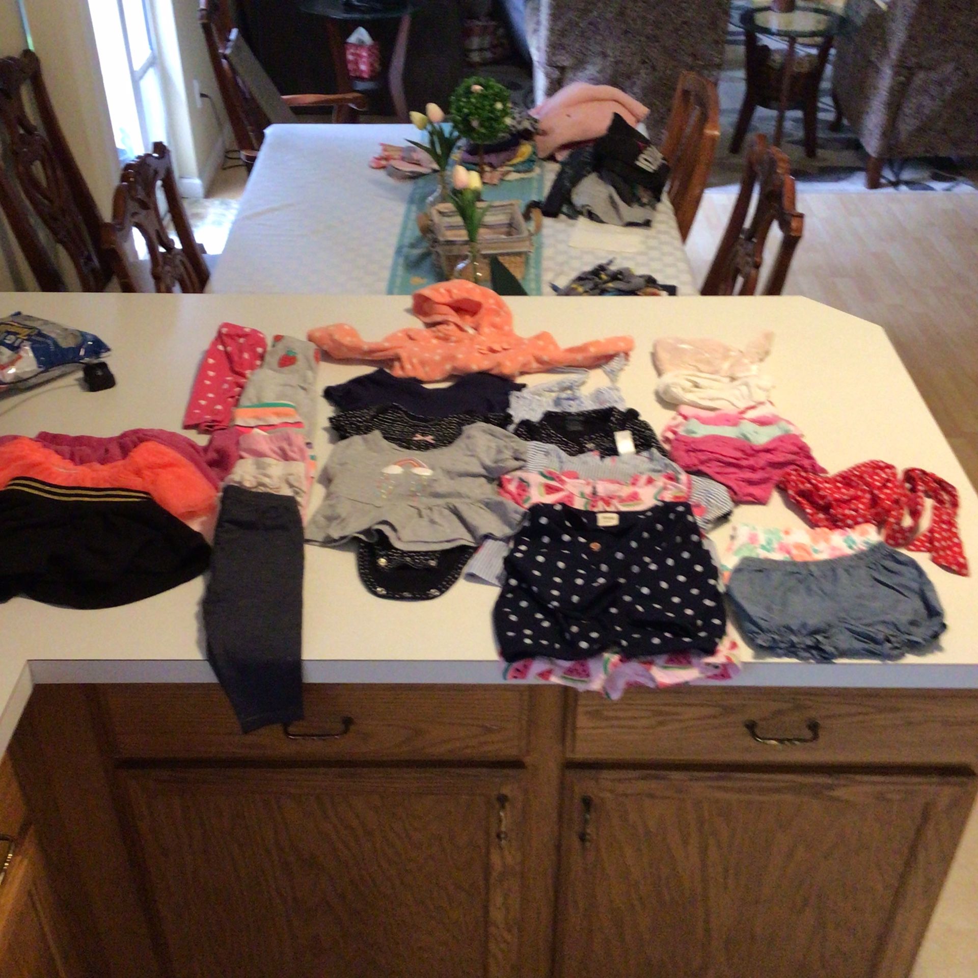This is 26 pieces of 3-6 month baby clothes 2 pairs of shorts 4 pairs of briefs one pair of leggings 1 hat 8 shirt/jacket/onesies 7 pants 3 skirts 1 jacket. I buy storage lockers and this was in one of them. Just trying to get rid of it in a lot. Some items are 6 to 9 months