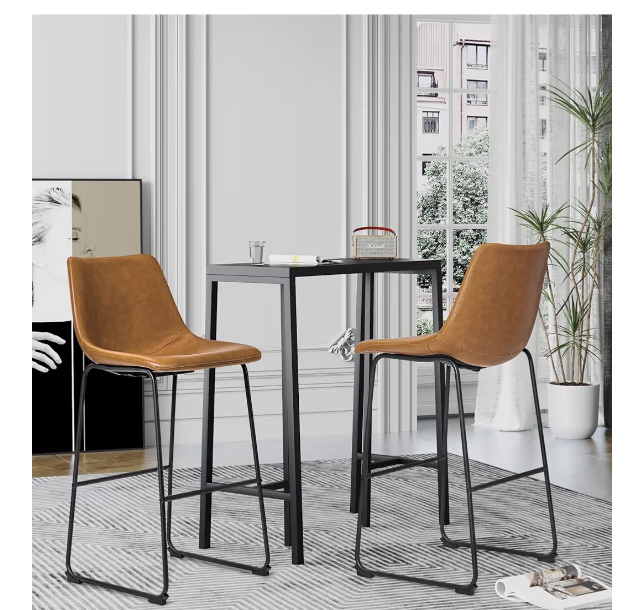 Furmax Bar Stools 29 Inches Counter Height Stools Set of 2, Dining Chairs, PU Leather Bar Chairs with Back, Modern Industrial Armless Stool for Kitche