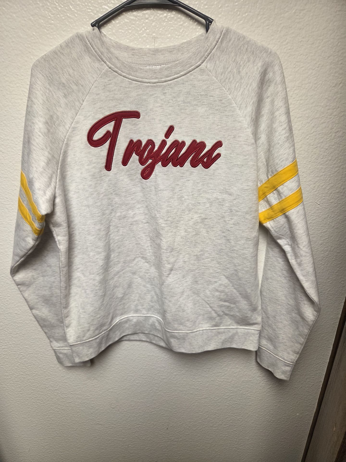 USC TROJANS grey Sweatshirt stitched patch logo & stripe details teen size LNWOT