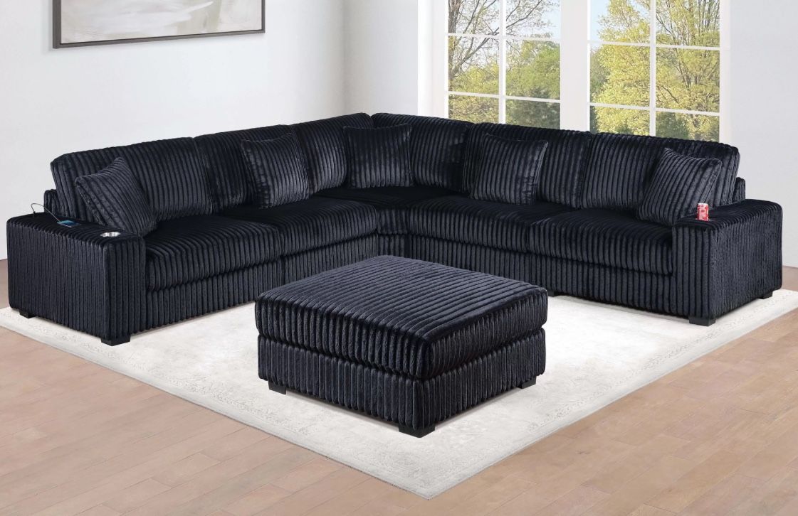 6-Piece Modular Set black jumbo corduroy (P) $999 FREE LOCAL DELIVERY