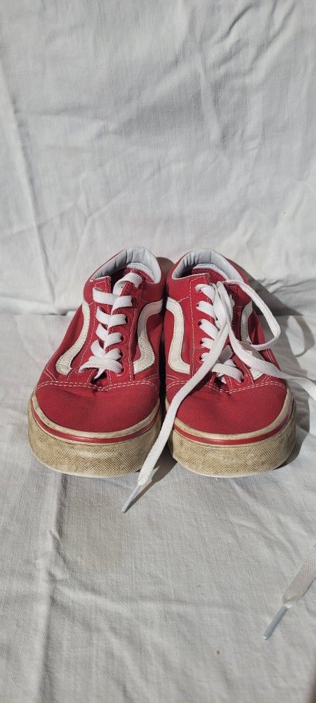 Pair of red Vans off the wall shoes size 5.5 men & 7 women. Some wear on soles